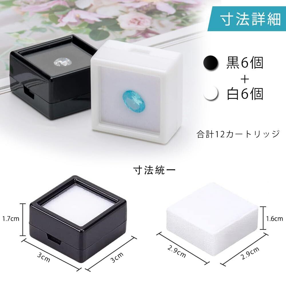 ルースケース 宝石箱 12個セット プラケース 窓付 3cm ジュエリーケース 小物入れ 正方形 プラスチック PVC 高透過性 ダイヤモンド 天然石 石 コレクション スポンジ固定 小型展示ケース DIY