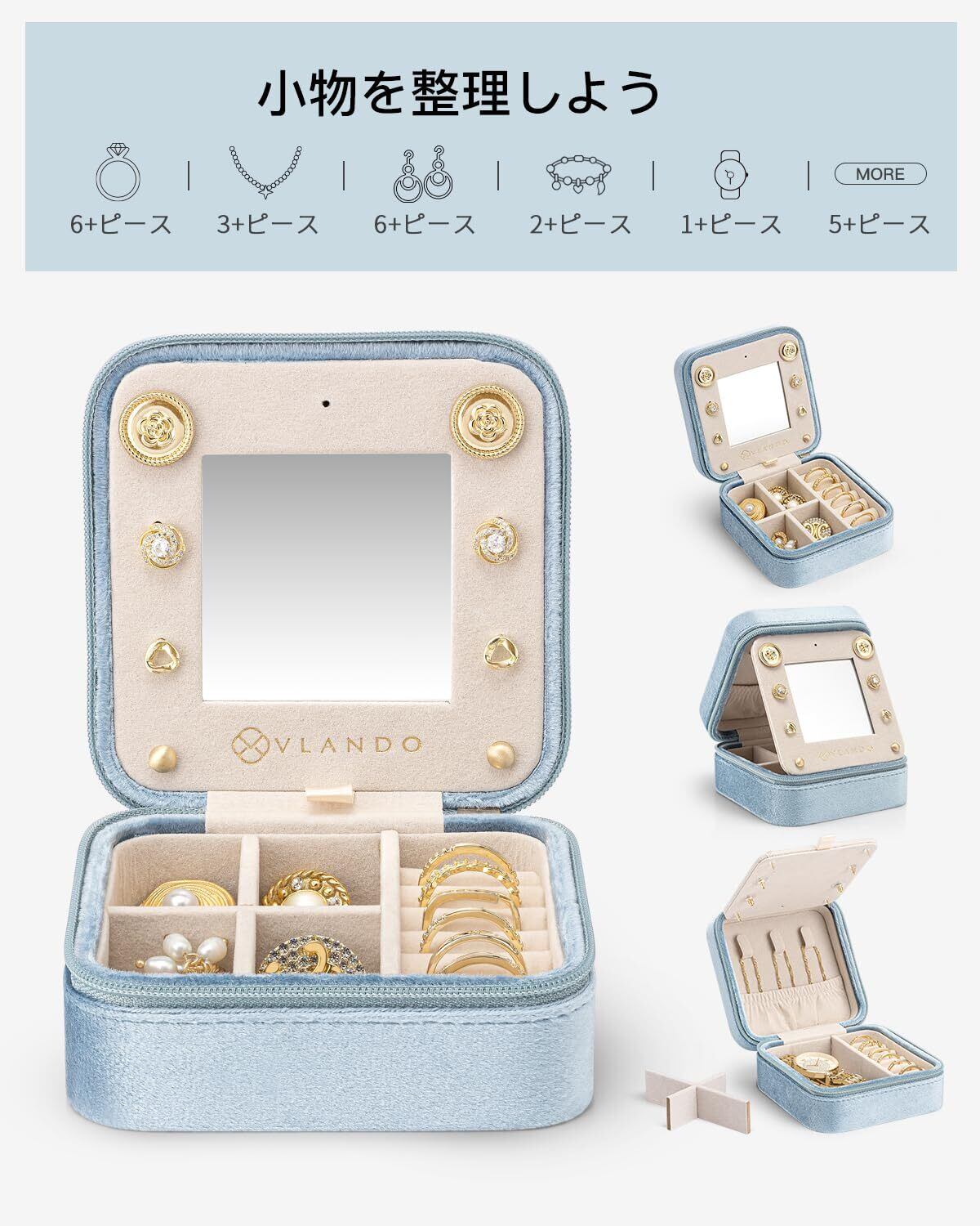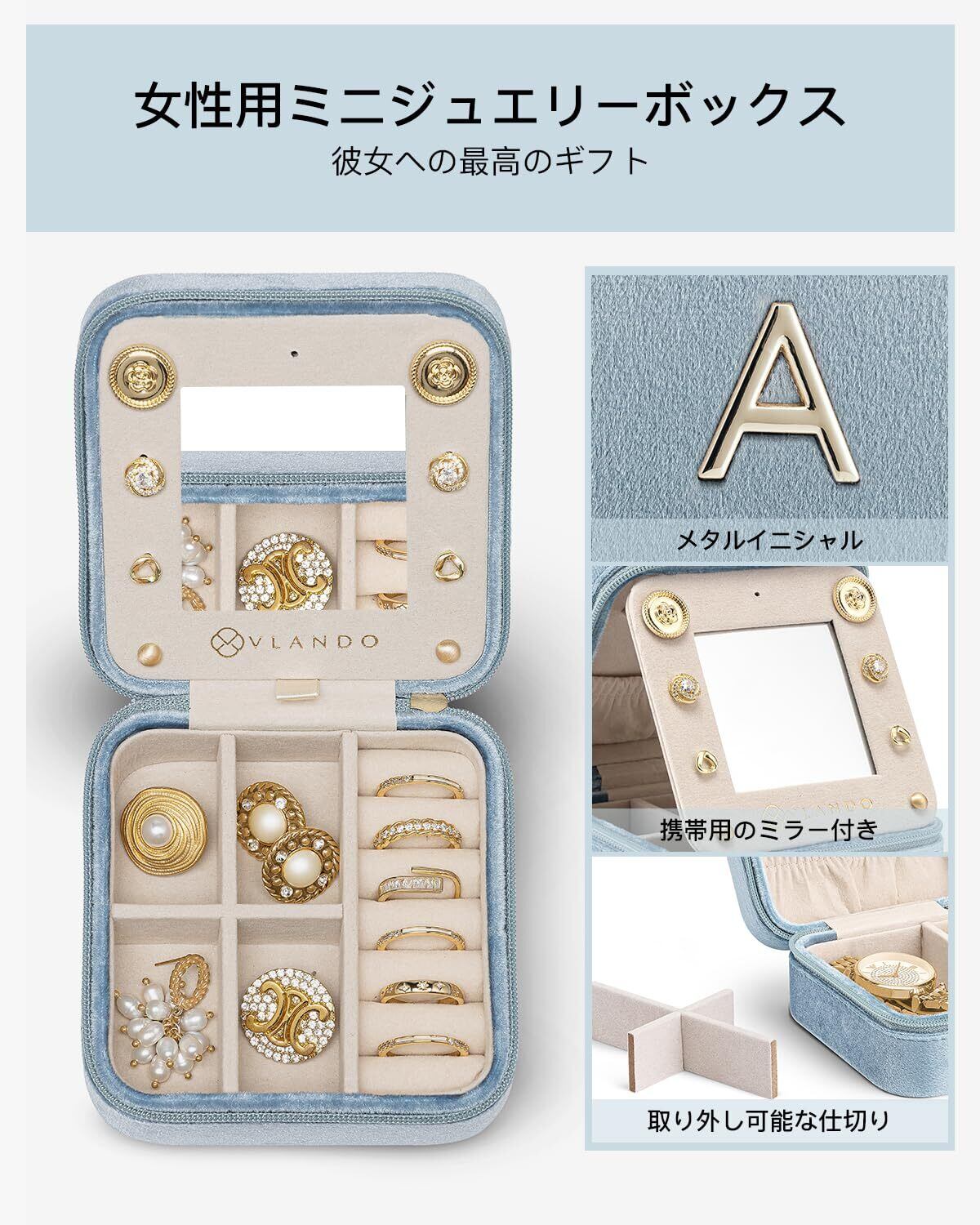 【新着商品】Vlando 誕生日プレゼント女性 ジュエリーボックス 名前入り プレゼント 携帯用 鏡付き ジュエリーボックス トラベル 結婚祝い プレゼント 記念日 バレンタイン 退職 祝い 贈り物 お歳暮 正月(ブルー・PUレザー・パール・A)