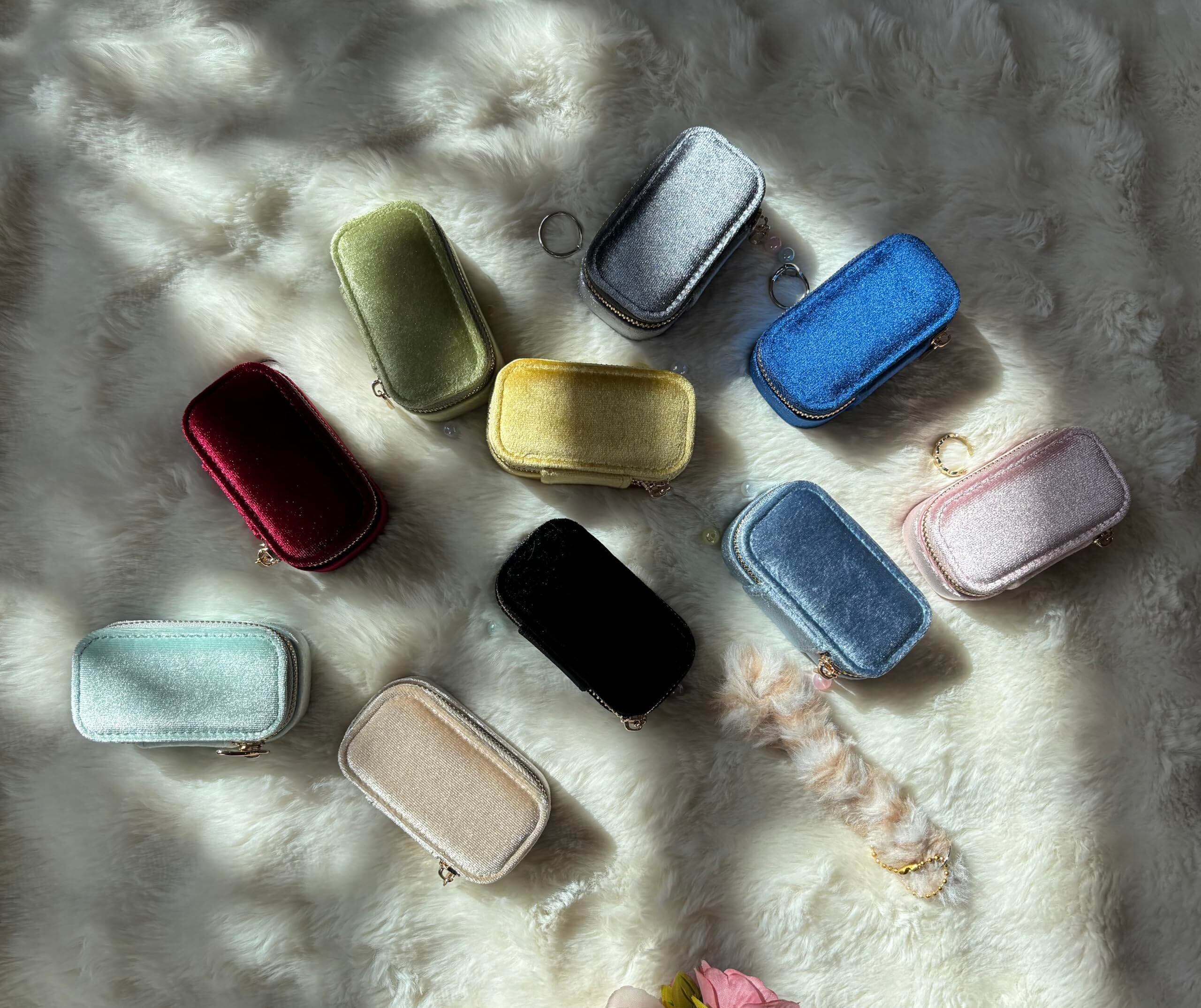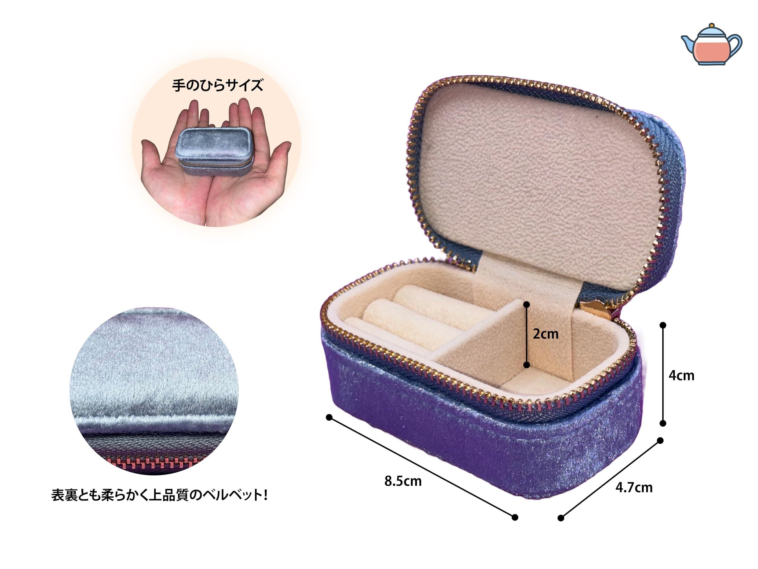 * 日常のお出かけや旅行に便利なジュエリーケース 持ち運び用、サイズS(8.5 x 4.7 x 4cm)。このアクセサリーケースは、指輪ケースやネックレスケースとしても活用でき、アクセサリー 収納に最適です。小さくても多機能なデザインが魅力的です * 裏地は柔らかいベルベットで手触りが良く、大切なジュエリーを傷から守ります。