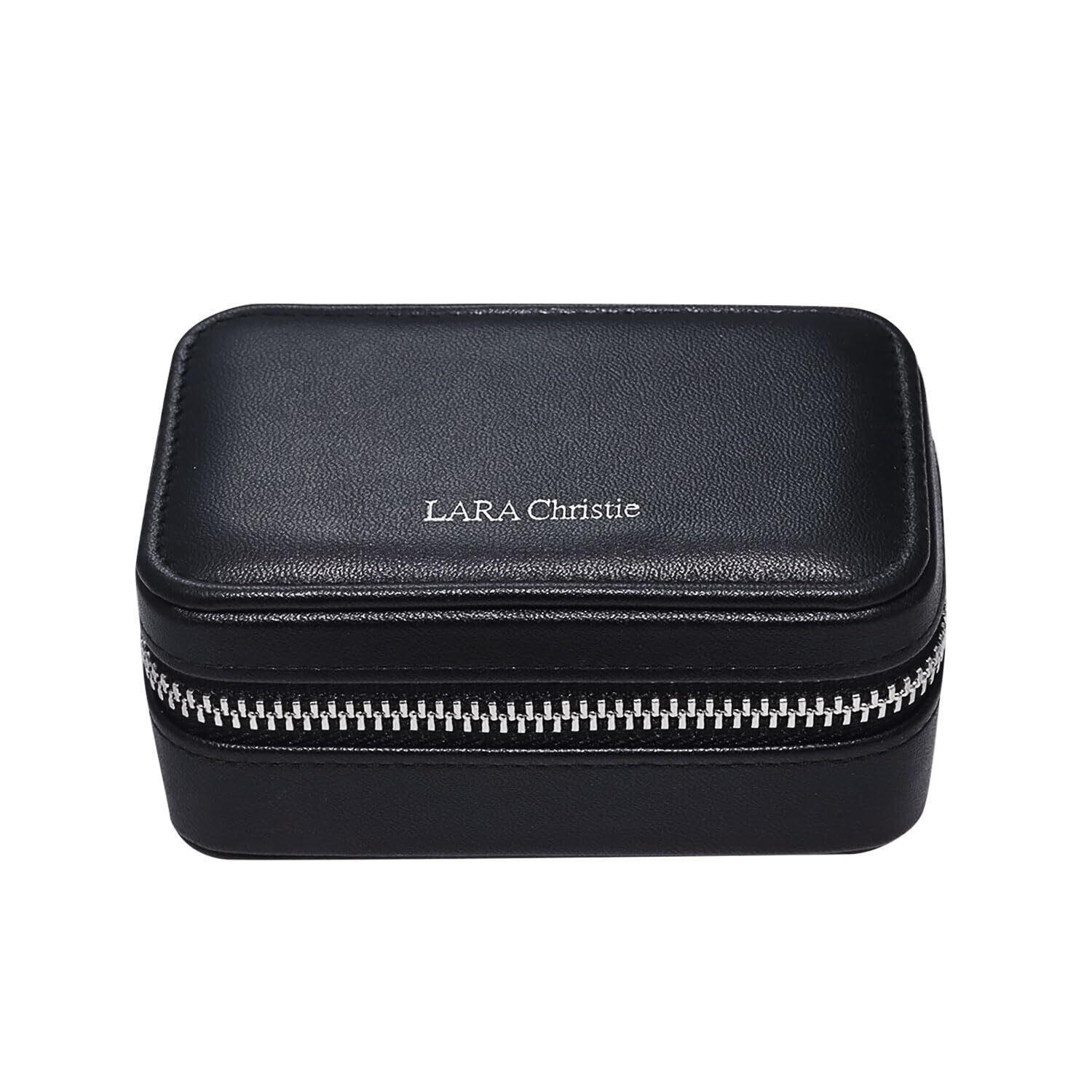 夜の静寂をそのまま閉じ込めたような、深みのある漆黒。LARA Christieが贈るデイリーアイテムシリーズ《Nocturne》。洗練された美しさと機能性を兼ね備えたジュエリーポーチが登場。バッグの中でもかさばらず、外出先でもスマートにジュエリーを持ち運べる。素材には合成皮革を使用し、落ち着いた質感と耐久性を両立しました。シンプルかつミニマルなデザインは、性別や年代を問わず幅広い層にフィットし、幅広く活躍します。最大のポイントは、内蔵されたミラー。外出先や旅先でも、さっと身だしなみを整えられるこの機能は、ジュエリーポーチとしての利便性を格段に高めます。ピアスホルダー(2ペア分)、ネックレス・ブレスレット用スペース、大ぶりのジュエリーも収まるフリースペースなど、収納力も抜群。アクセサリーを美しく、そして安全に保管できる構造が魅力です。さらに、パッケージにもこだわりを。ポーチをスムーズに取り出せる前開き仕様のボックスに加え、リボンラッピングとブランドロゴ入りショッパーが付属。開封の瞬間から特別感を演出し、誕生日や記念日などのギフトにも最適です。※ジュエリーは付属しておりません。