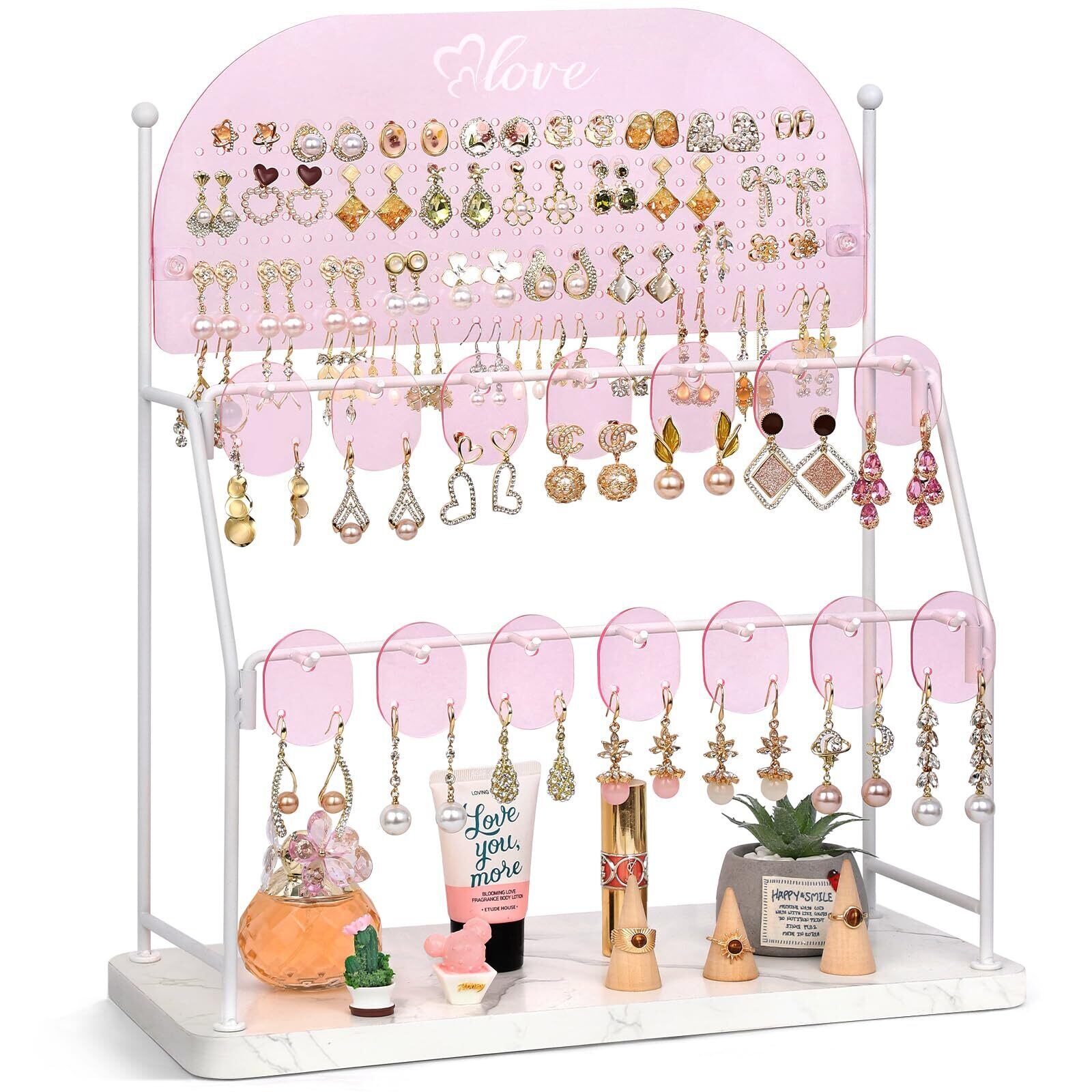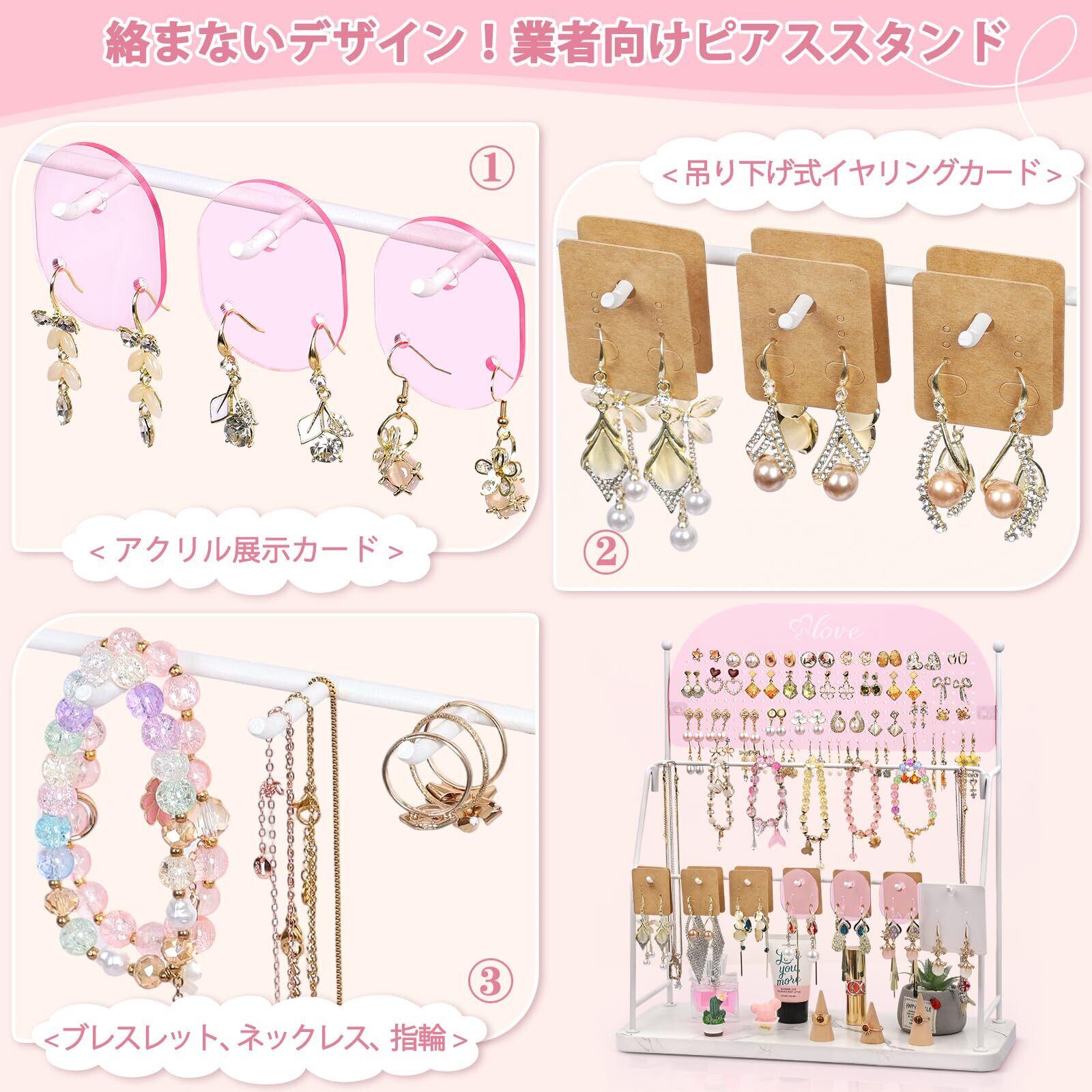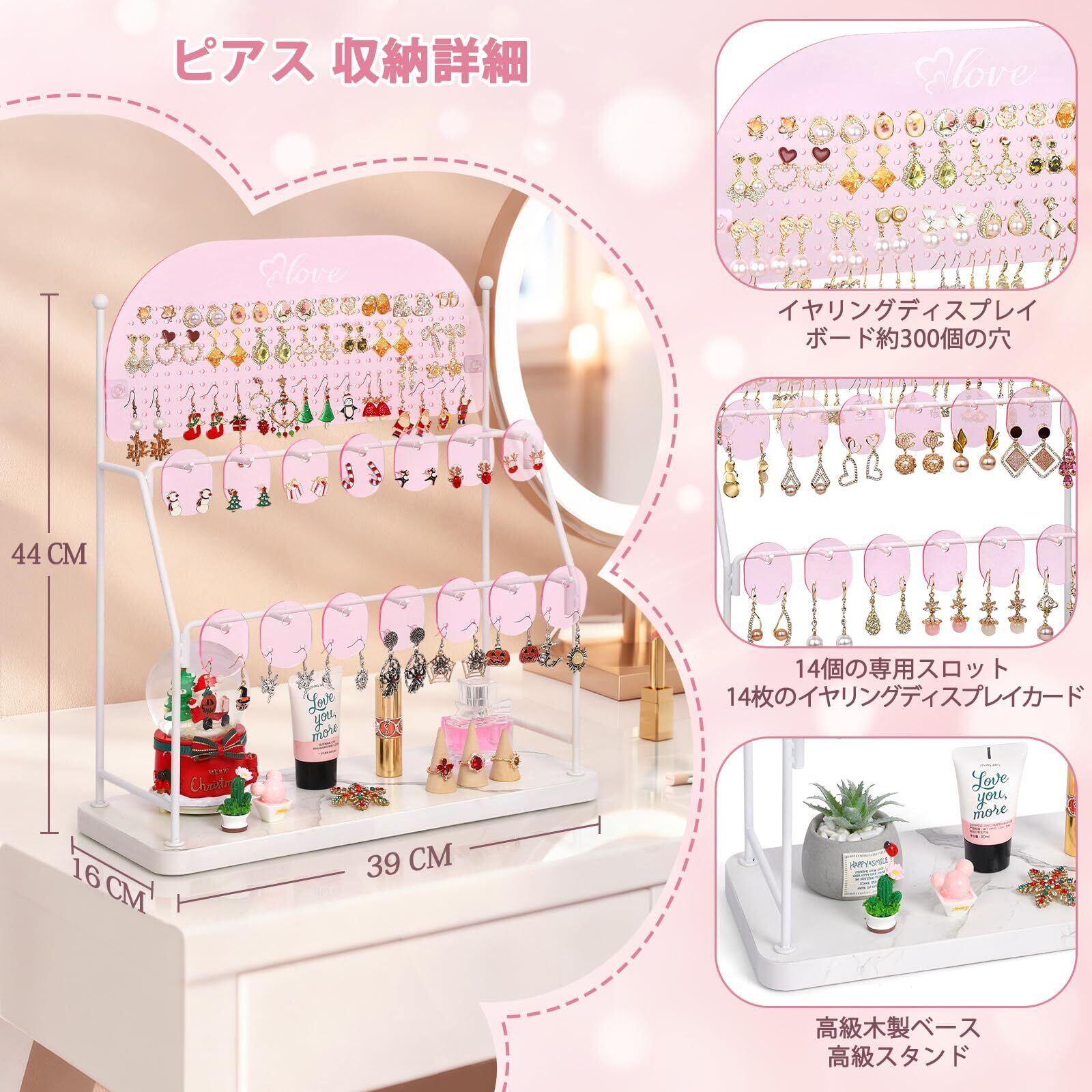 【数量限定】アクセサリースタンド・アクリルピアス 収納スタンド(14フック付き·約300穴)- ネックレス 収納 大容量・ジュエリ・ピアス・フープ・ペンダント・ブレスレットの展示・整理に、卸売・小売店舗用ディスプレイや自宅のドレッサーにも最適(ピンク)