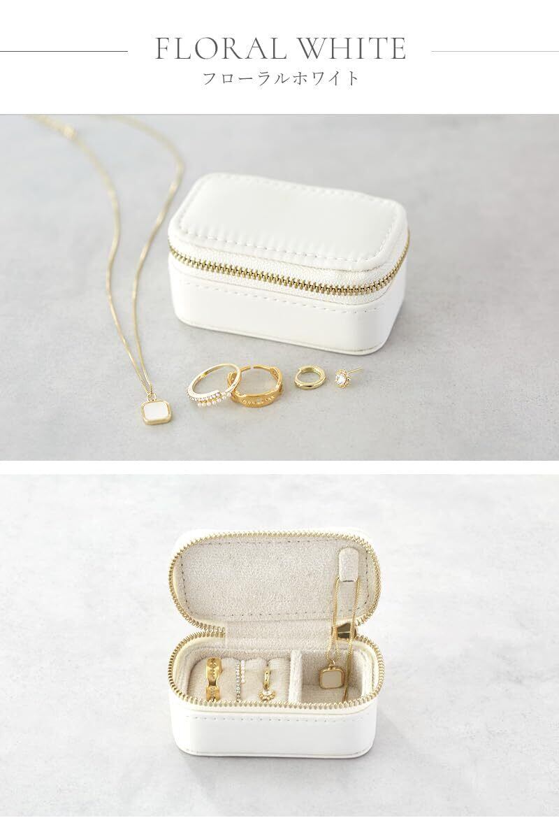 chamo ジュエリーボックス 携帯用 ミニサイズ コンパクト 旅行用 アクセサリーケース 大容量 軽量 60g 高級 ベルベット 素材 仕切り付き もつれ 防止 ネックレス 指輪 ピアス 収納 おしゃれ プレゼント 女性 誕生日 (フローラルホワイト)