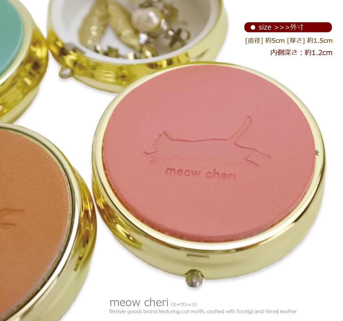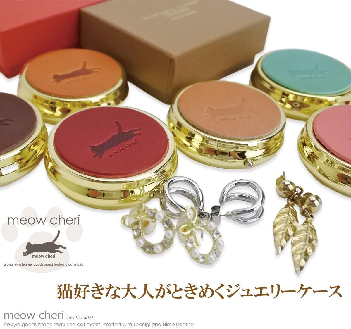 【在庫処分】ピアスケース ジュエリーケース 猫 小型 持ち運び 携帯用 ゴールド プレゼント 栃木レザー 猫好き プレゼント 女性 猫モチーフ 猫デザイン ねこのひ ネコの日 222 catday 猫雑貨 猫グッズ 贈り物 記念日 (レッド)