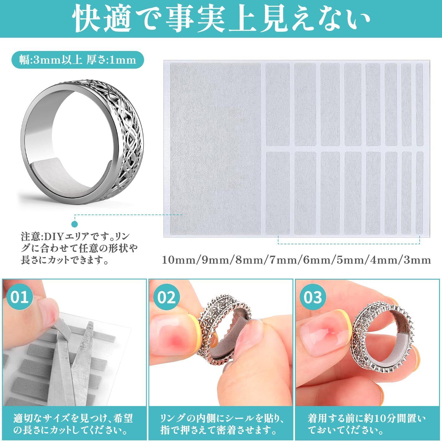 ️【透明なデザイン】透明素材を使用した指輪サイズ調整は、指輪の美しさを損なわず、完璧なフィット感を提供し、快適な着用体験を実現します。