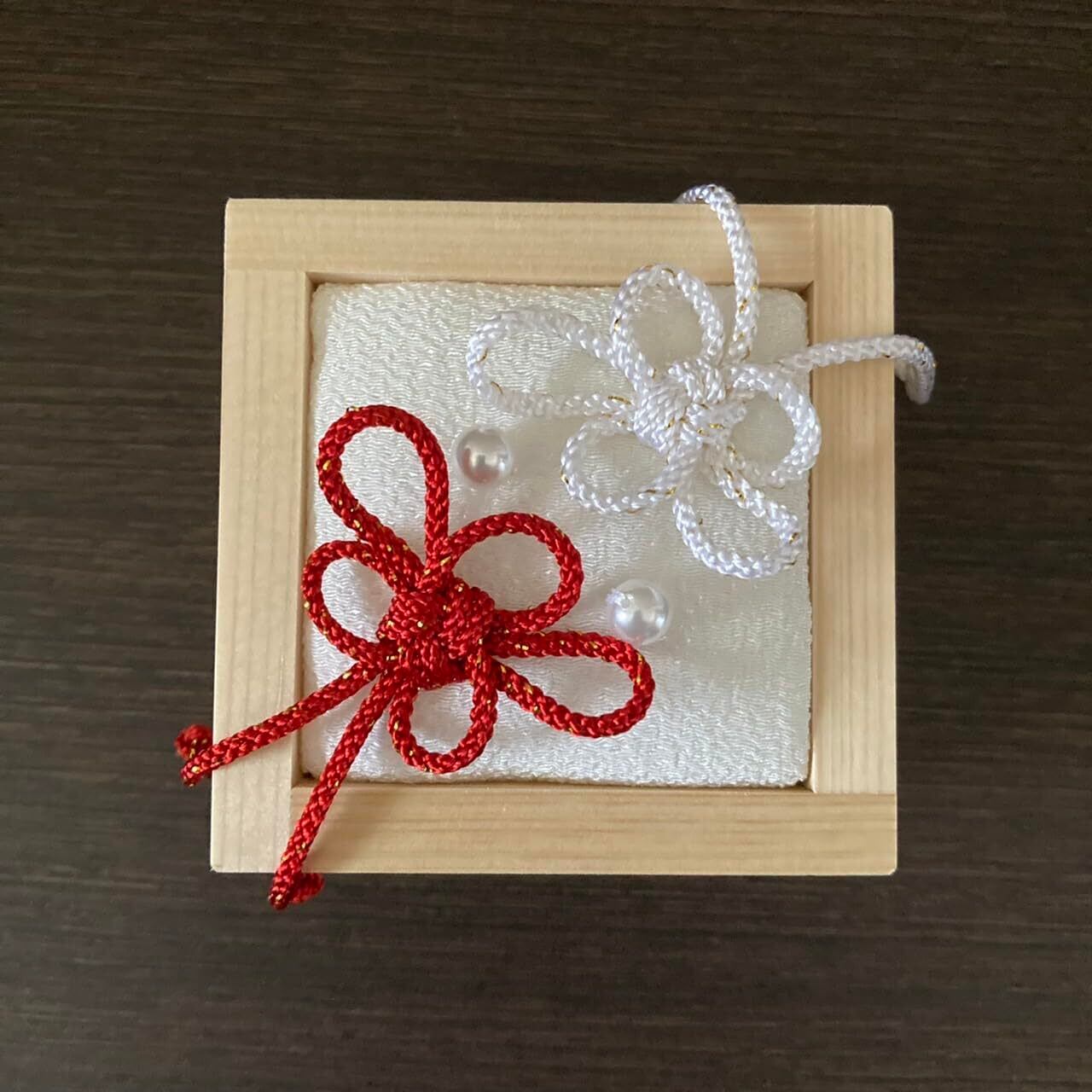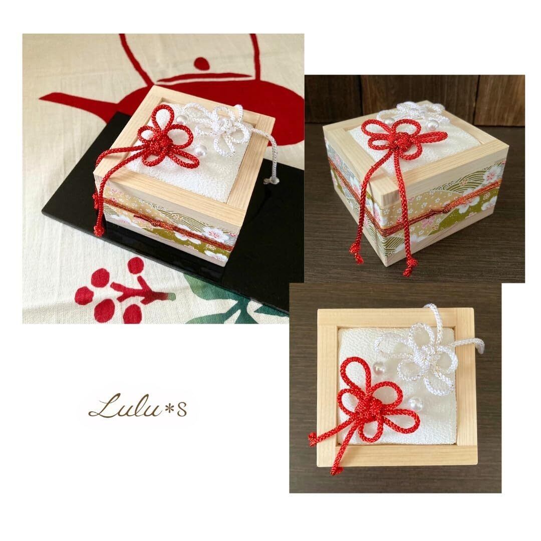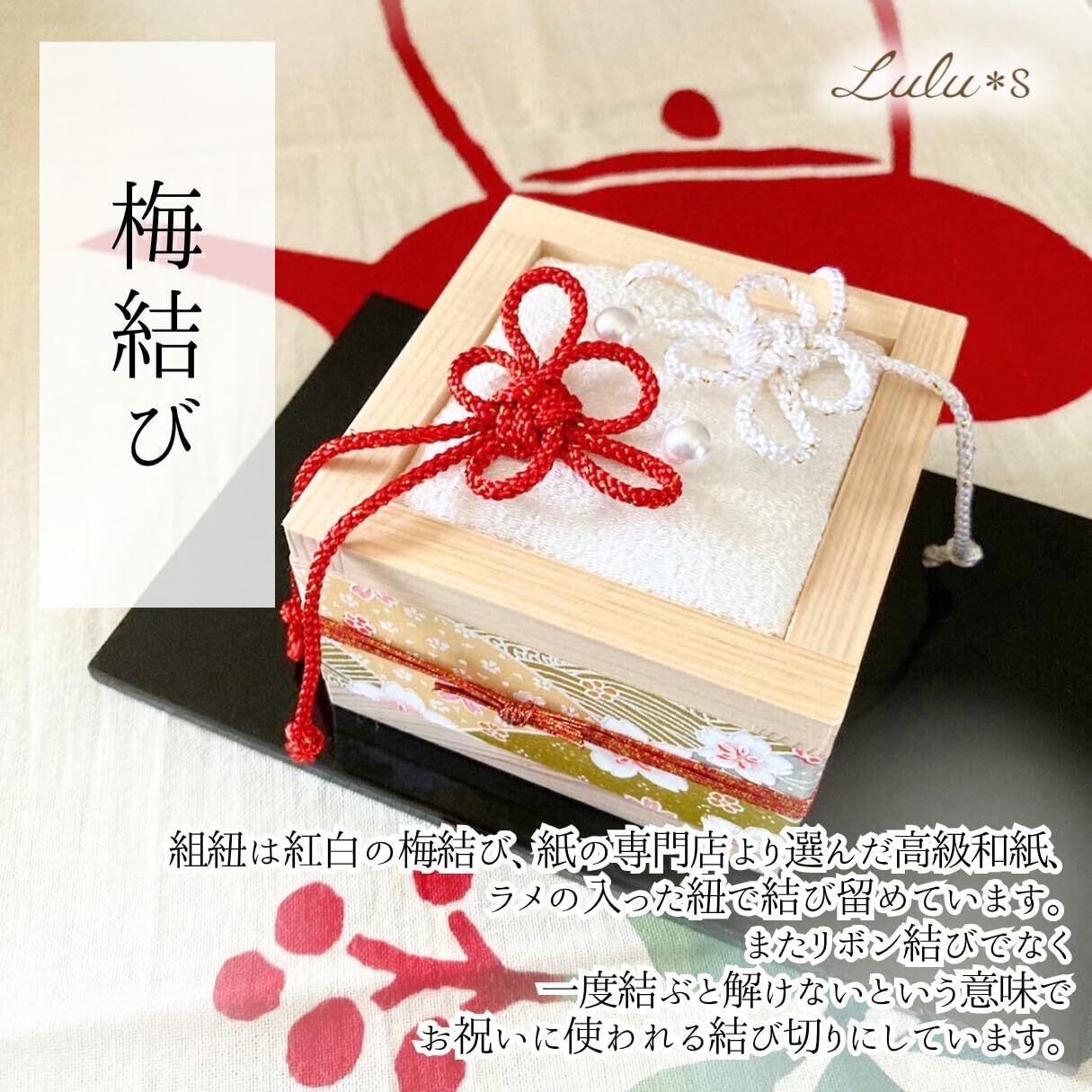 Lulu's ルルズ ひのき升と梅結びの リングピロー 完成品 和風 和装 神前式 和婚 結婚式 ウェディング ブライダル 結婚指輪 紅白 結び切り 結婚祝い 贈り物 ギフト プレゼント サイズ:升8.5cm 角高さ5.2cm ひのき升と梅結び Lulu's-2788