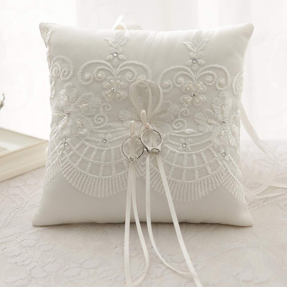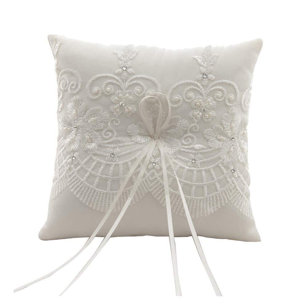 【特価商品】リングピロー 完成品 レース刺繍 花 リボン リングピロー ウエディング 結婚式小物 15X15cm (ビーズ)