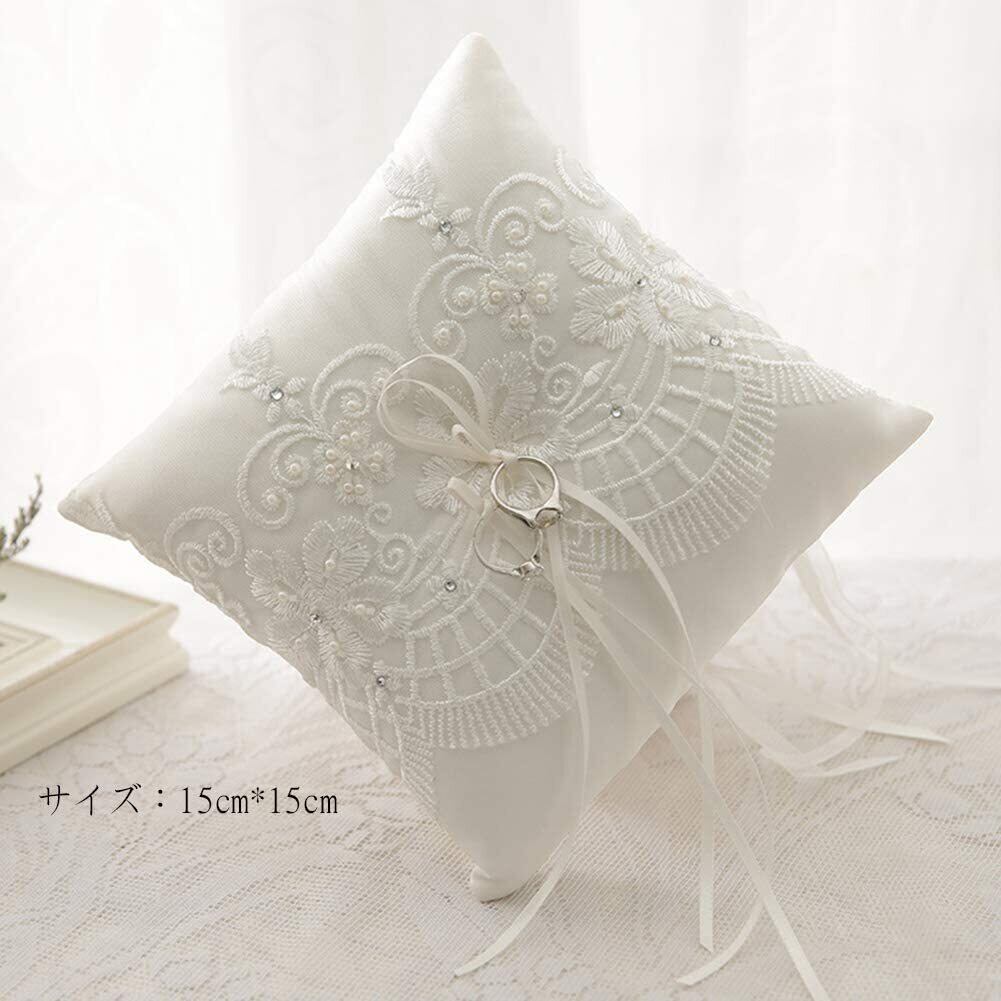 リングピロー 完成品 レース刺繍 花 リボン リングピロー ウエディング 結婚式小物 15X15cm (ビーズ)
