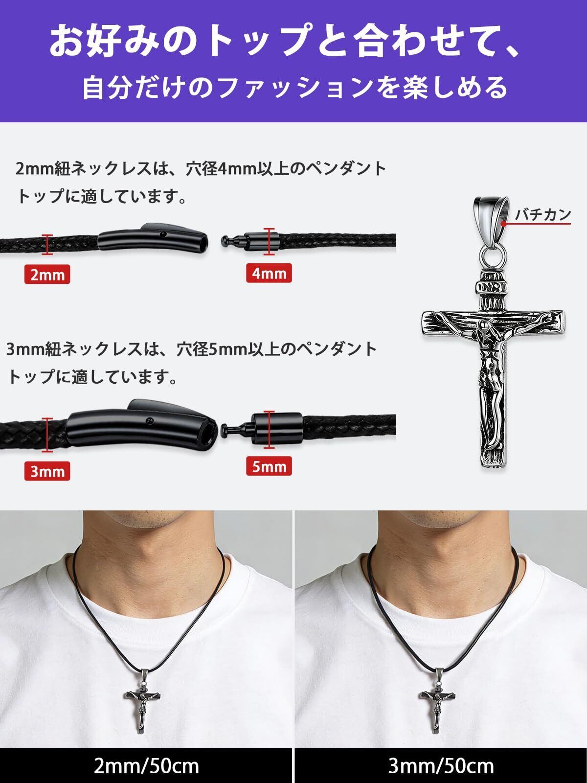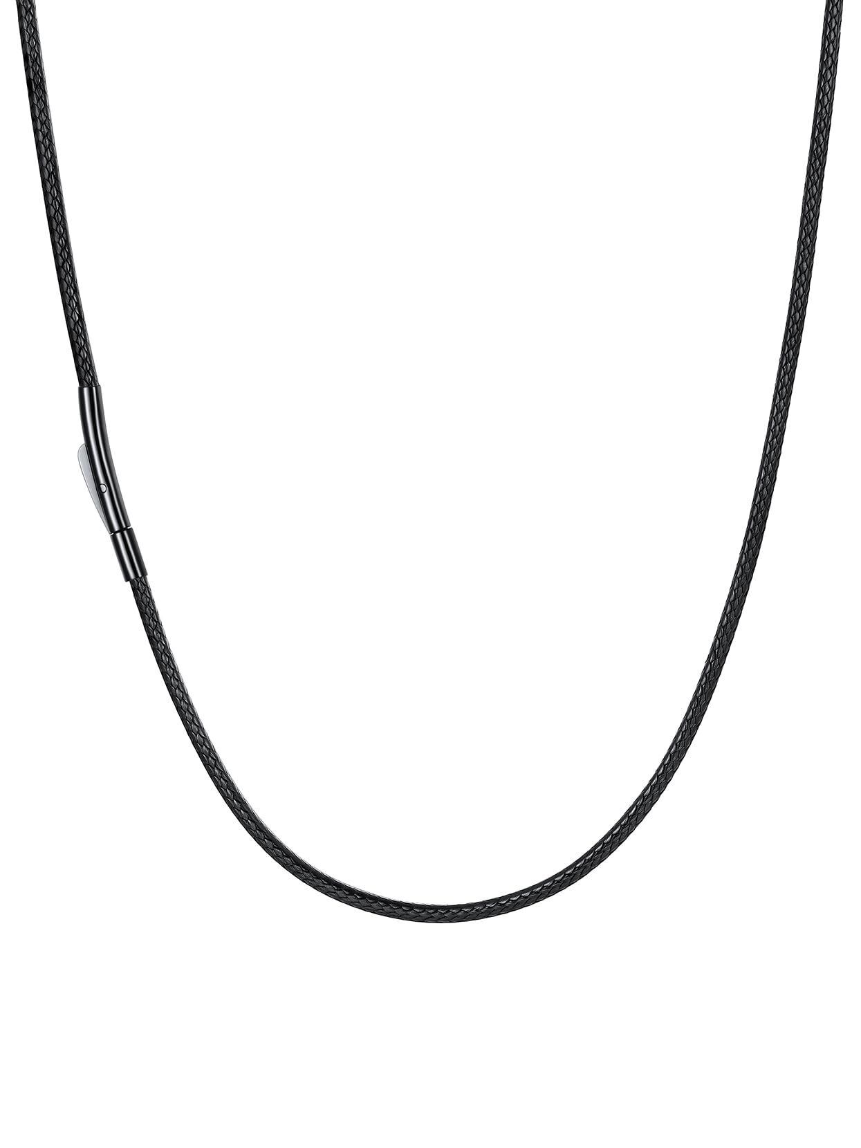 Richsteel ネックレス メンズ 革紐 ワックスコード 黒 ロングチェーン ペンダント用 耐水性 アレルギー対応 シンプル アクセサリー 幅2mm 45cm