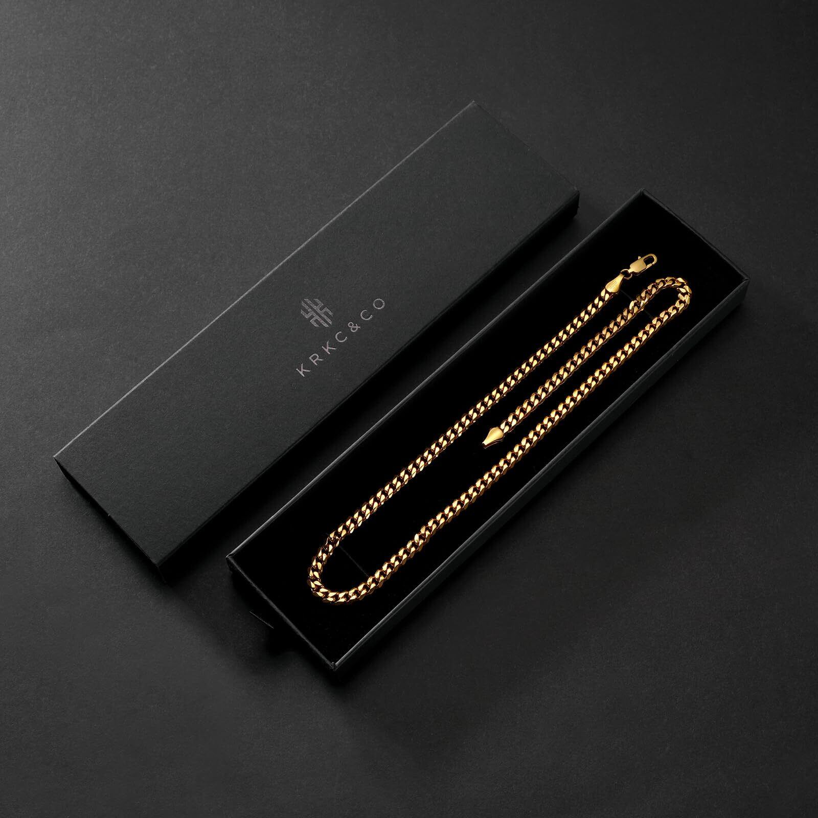 【在庫処分】KRKC&CO チェーンネックレス 6面カット メンズ 喜平ネックレス 3/5mm サージカルステンレス キューバンチェーン S925シルバー/K24金メッキ 金属アレルギー対応 男性 チョーカー B系 ストリート 人気 ギフト