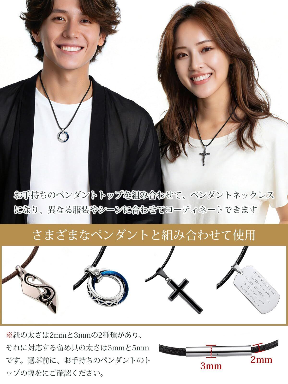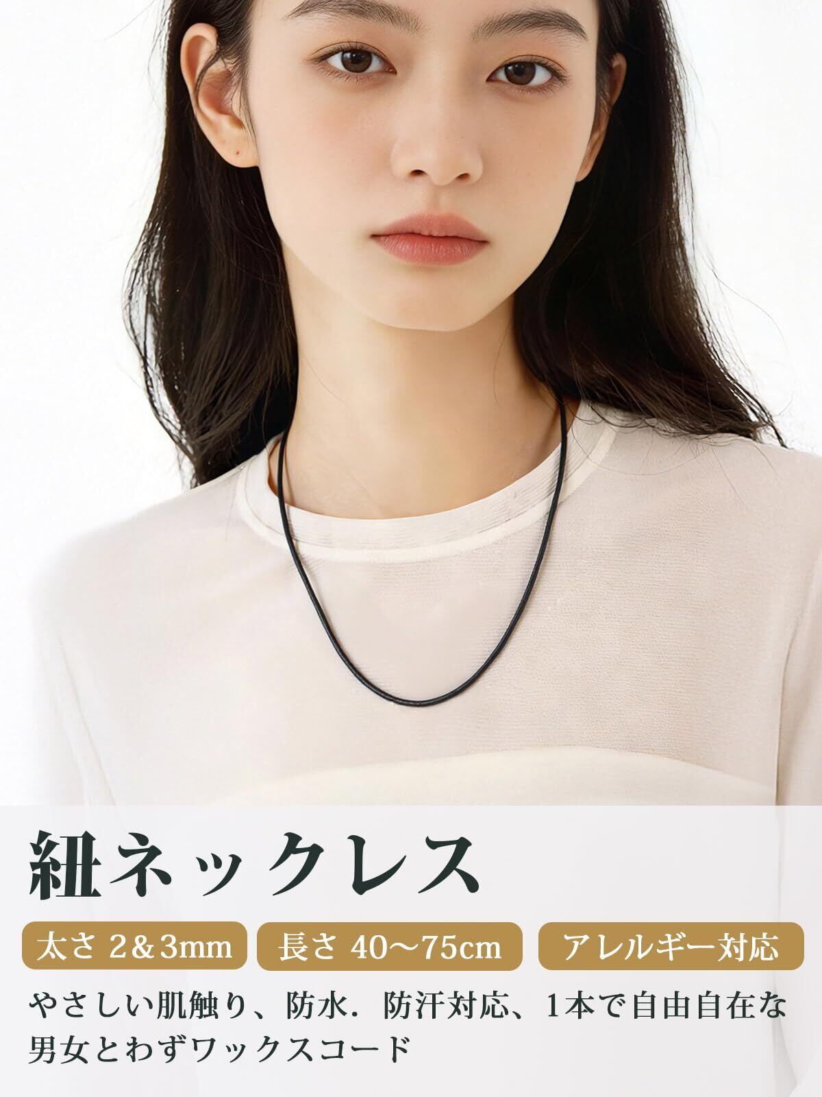 【お肌に優しい紐ネックレス】チェーンネックレスはレザーを採用します。水や汗に強く、アレルギーになりにくく、頑丈で優れた材質です。金属アレルギーを心配する方もご安心してお使いいただけます。