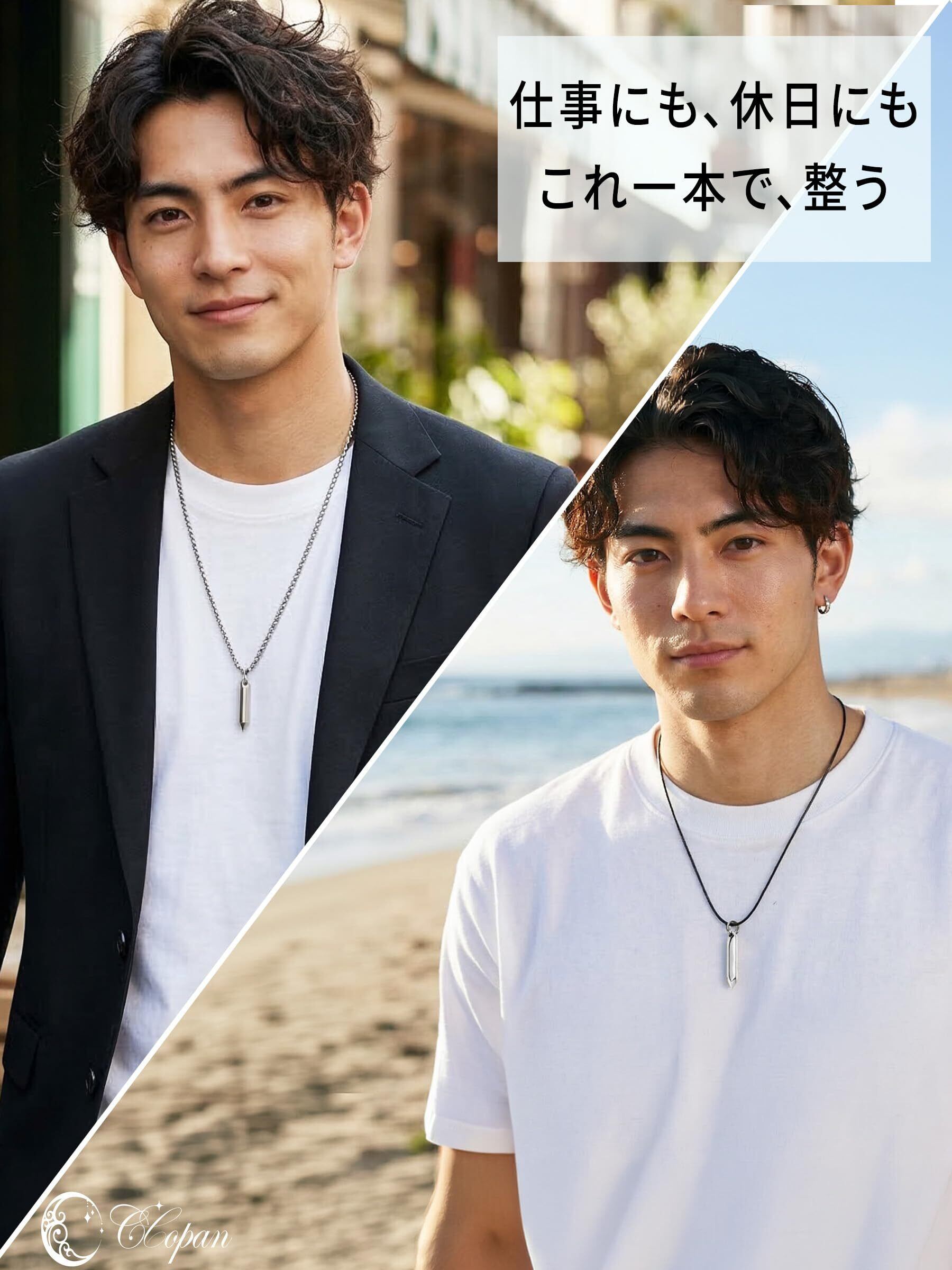 【選べるカラー】メンズコーデに合わせやすい色から選べる、3WAY仕様のネックレス。チョーカー・ペンダント・重ね付け風の使い方ができ、シルバーカラーの組み合わせが首元にほどよいアクセントを添えます。
