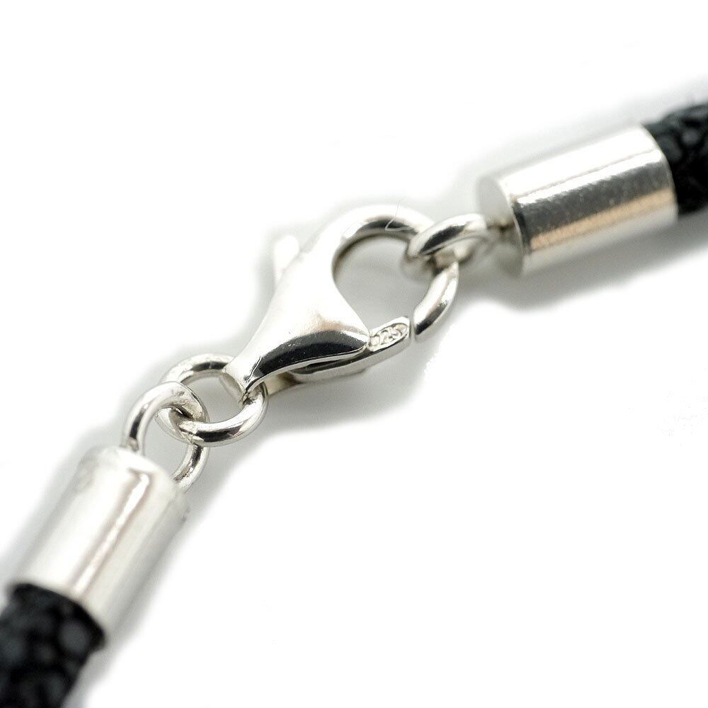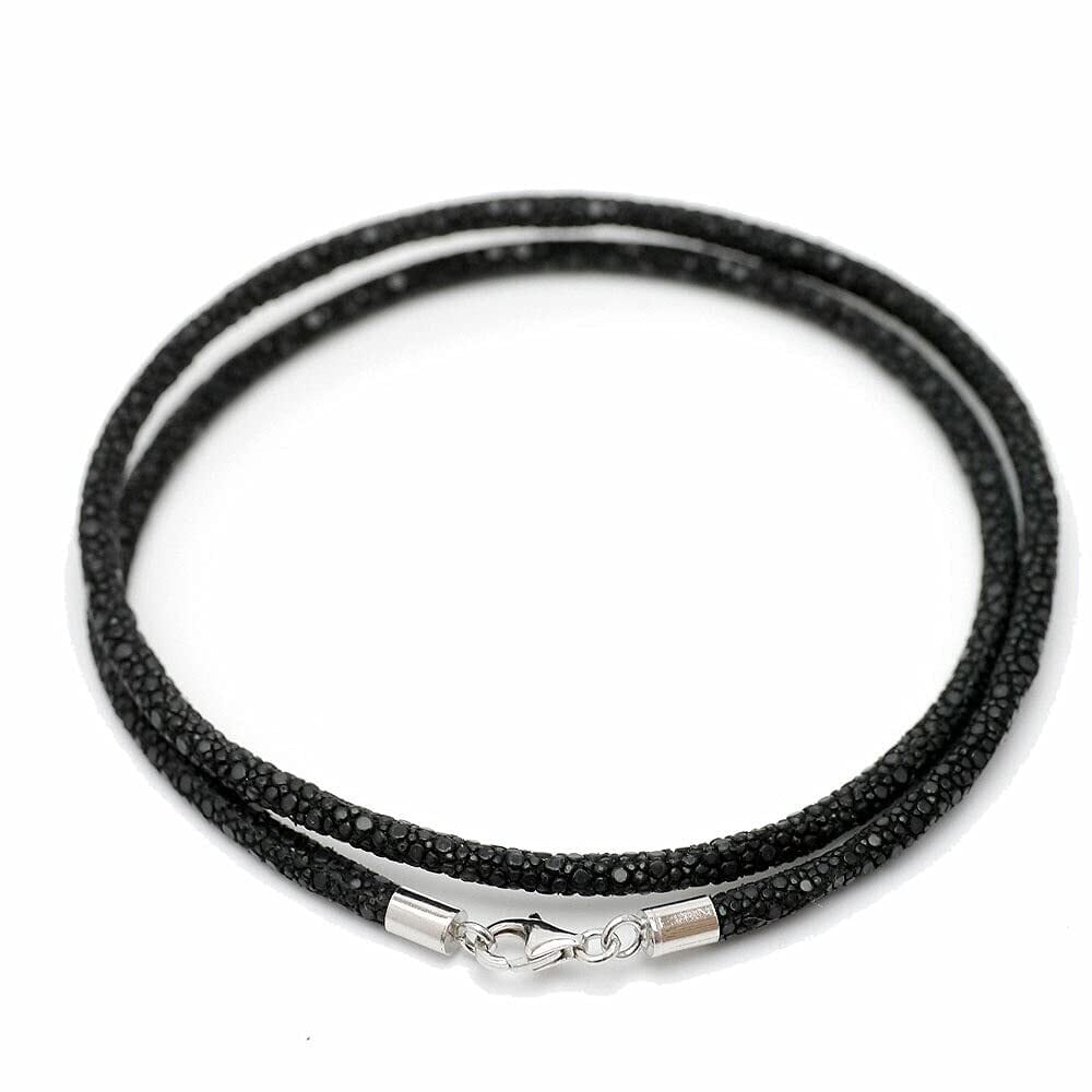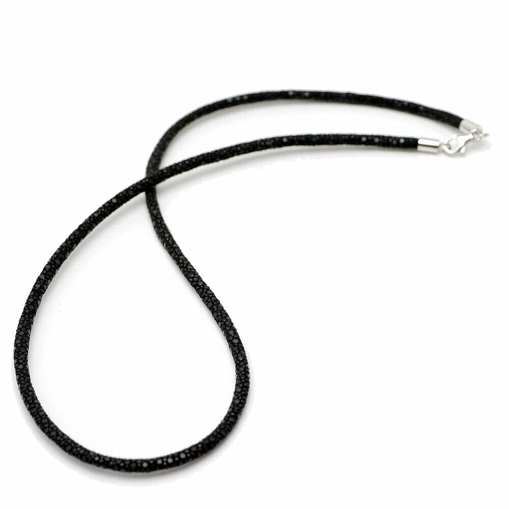 スティングレイ革(エイ)キラキラ レザー チョーカー 黒 シルバー925フック メンズ[幅3mm5mm]ブラック ネックレス