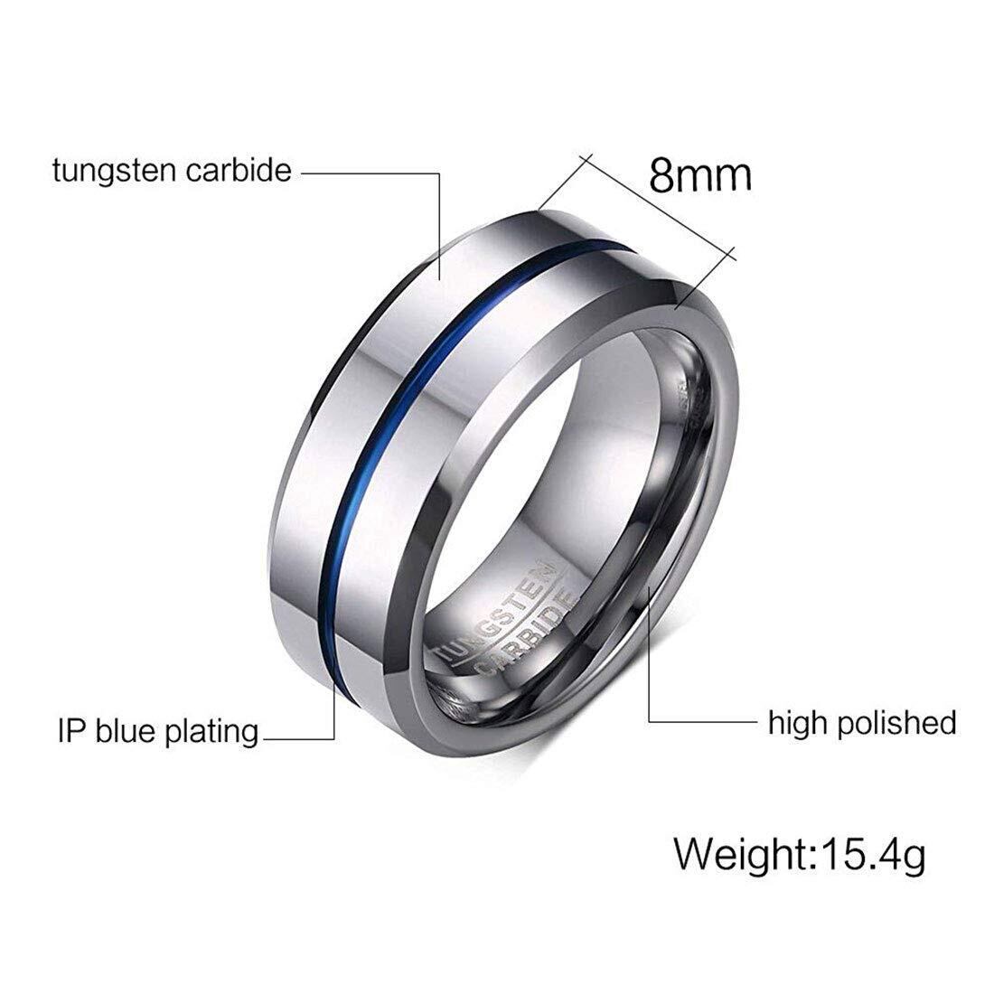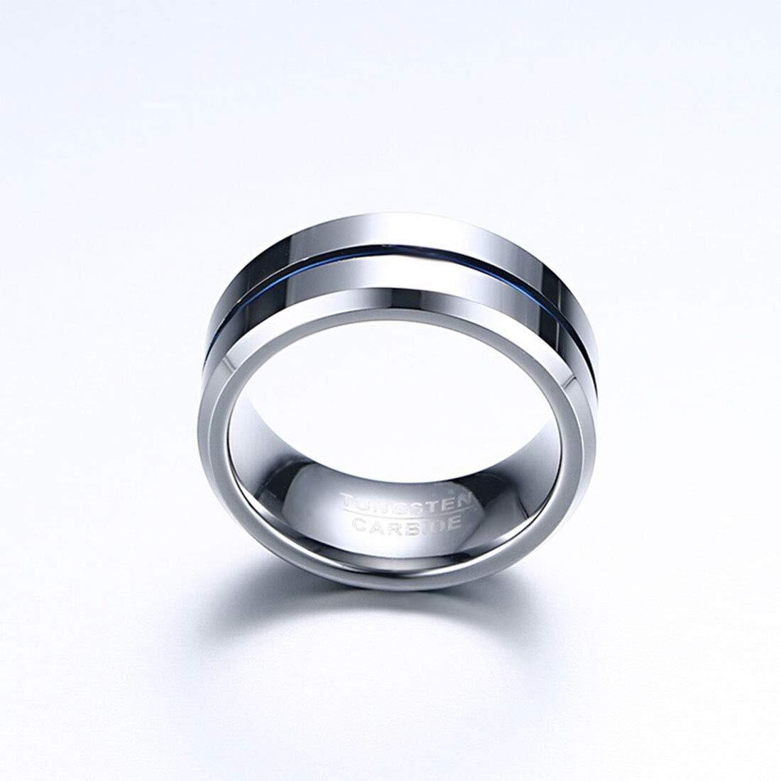 「Rockyu 指輪」 タングステン 指輪 メンズ シンプル リング シルバー ブルー 青線 指輪 20号(指周り:62.4mmに合う) 幅:8mm タングステン比重:金とほぼ同じ、硬度:ダイヤモンドに匹敵、タングステンは耐久性に優れ、傷がつきにくいため、いつまでもその高度な輝きを失いません。【シンプルなデザイン】大人の男性にもピッタリのさりげなく男らしさを与えてくれる魅力的なタングステンメンズ指輪。