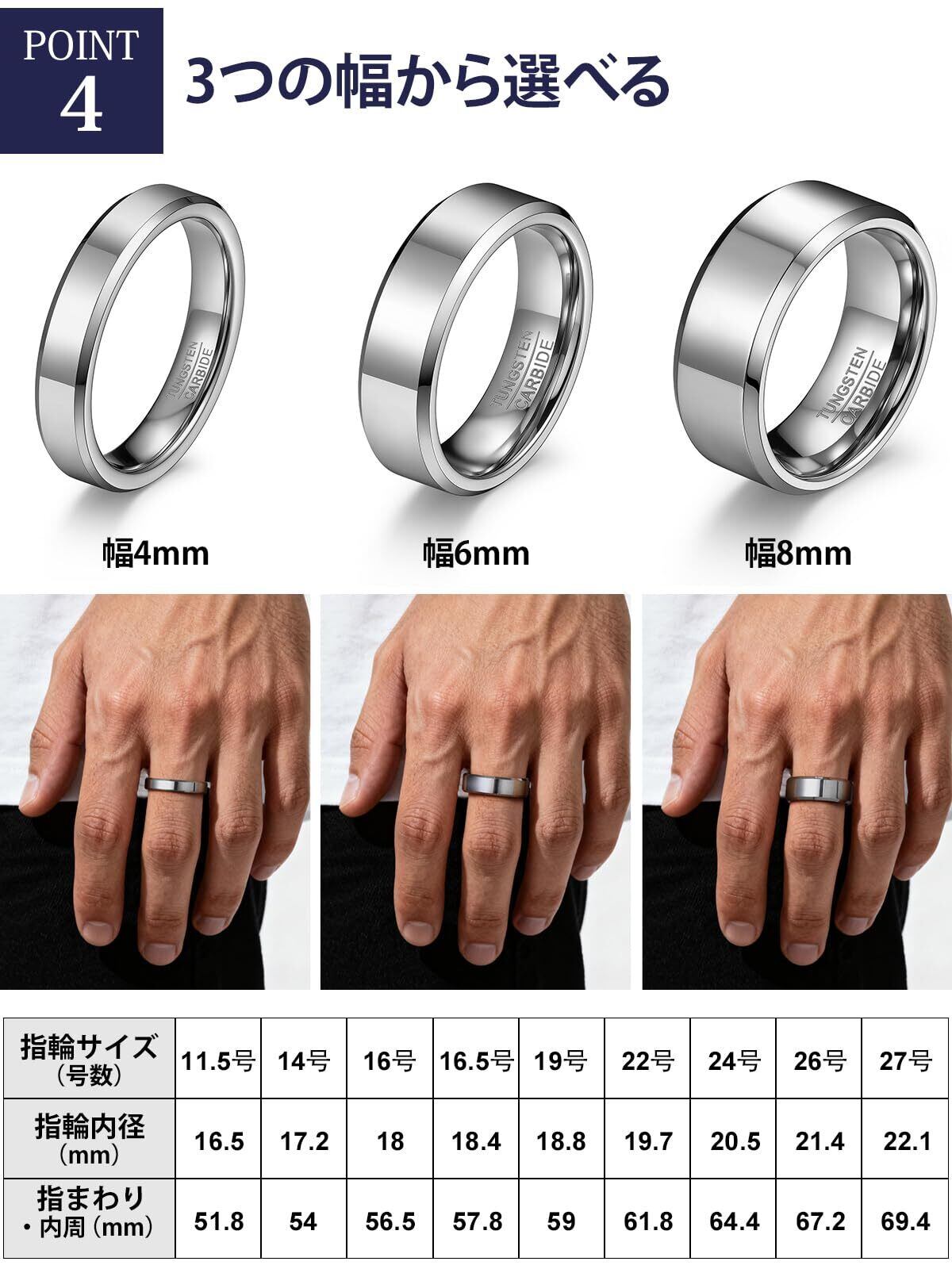 【特価商品】タングステン リング メンズ 指輪 太め 金属アレルギー対応 幅4mm/6mm/8mm シンプル ファッションリング 結婚指輪 男性 アクセサリー
