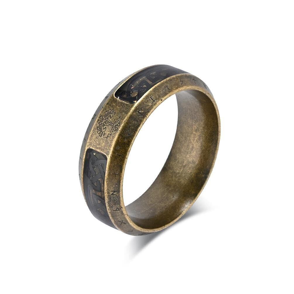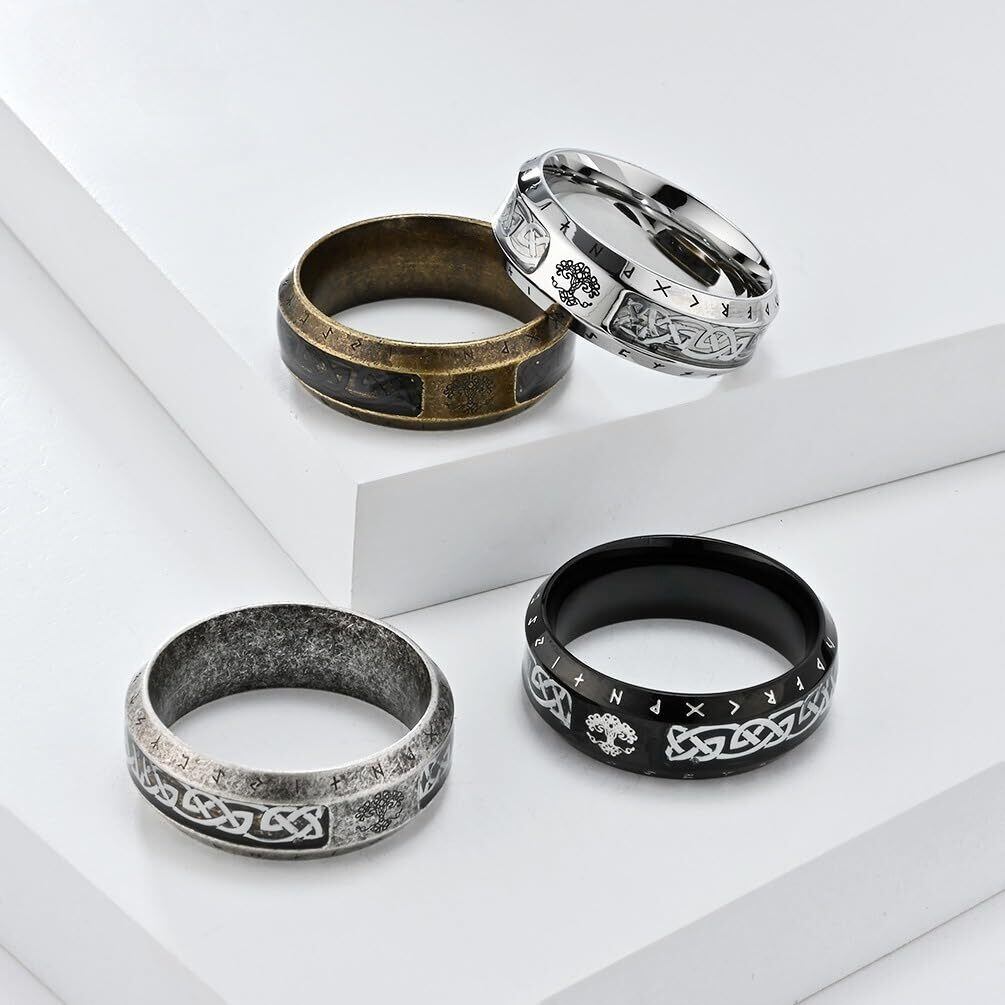 【新着商品】リング メンズ ステンレス 指輪 北欧 ヴィンテージ ルーン文字 生命の樹 ケルト柄 彫刻 8mm幅 個性的 アンティーク風 おしゃれアクセサリー ハロウィン バレンタインデー プレゼント
