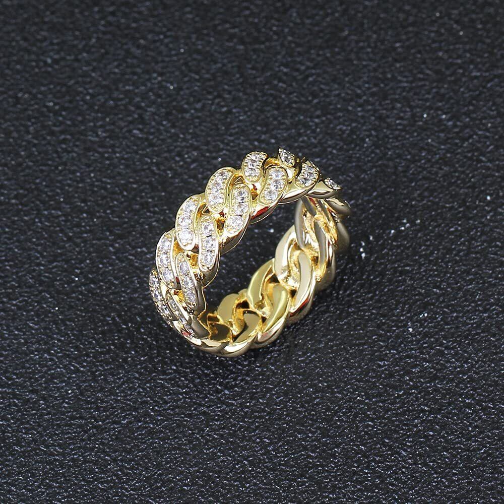 【Rockyu指輪】 ゴールド リングメンズ HipHop ステンレス製ヒップホップリング ピカピカ 豪華 幅広 喜平指輪 15号 素材:ステンレス AAAランクキュービックジルコニア 幅:8mm