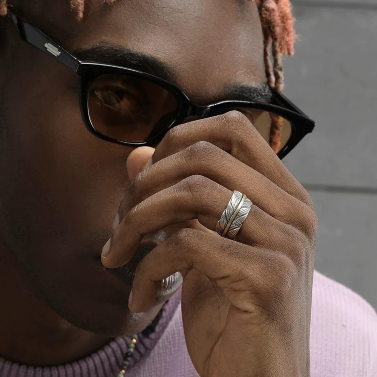 【自由と強さを象徴するフェザーリング】イーグルの羽根をモチーフとしたフェザーデザインのリングです。特に羽根をモチーフにした物はネイティブ系ジュエリーや、インディアン調のファッションでよく登場します。フェザー×鷲の意味は、「魂の自由」「真の強さ」「守られている」という意味があります。羽(フェザー)モチーフの意味・・・「飛躍」や「運気上昇」という意味を持っています。