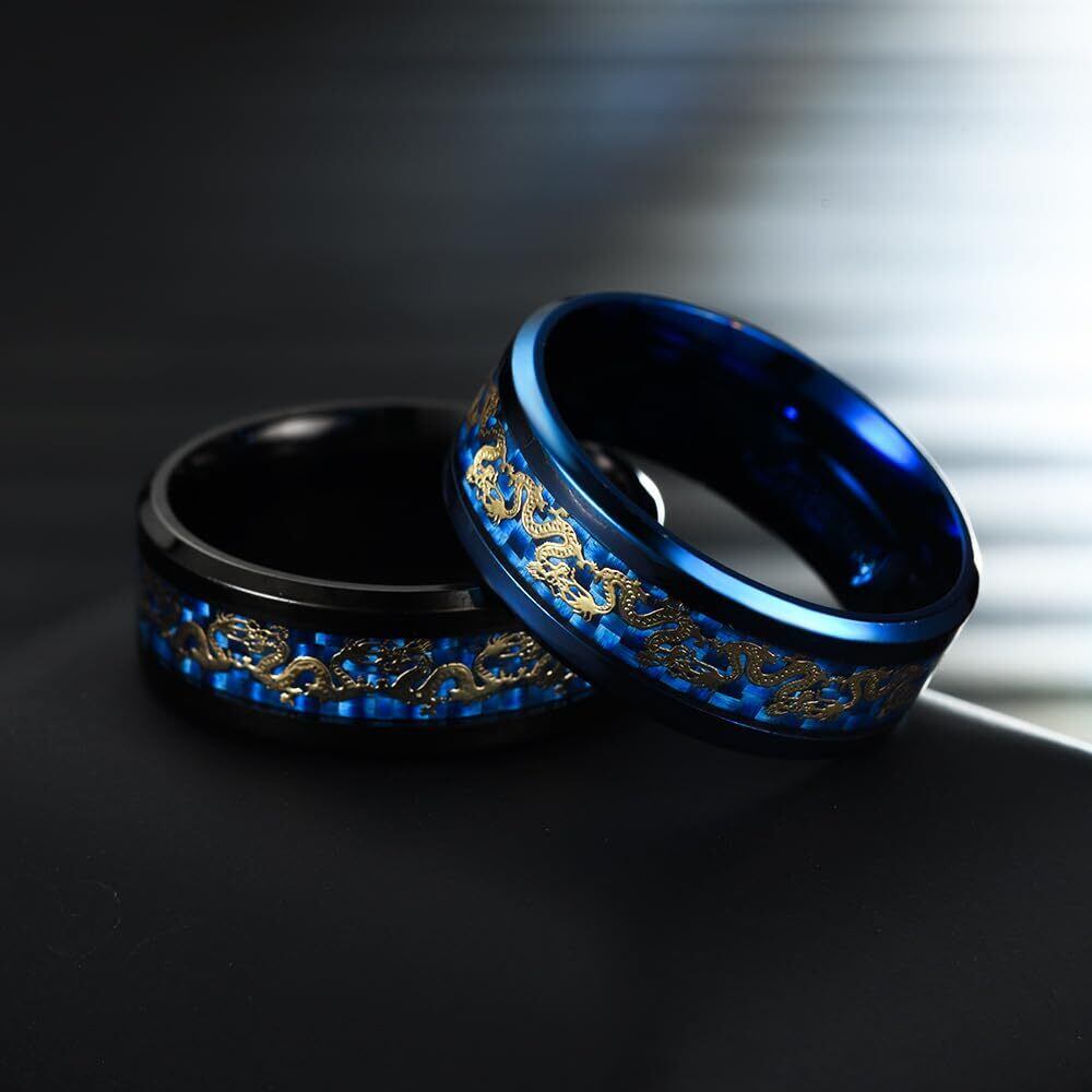 指輪 メンズ おしゃれ お守り 龍紋リング 竜紋 耐久性 高級 炭素繊維 カーボンファイバー 平打ち指輪 ステンレス 金属アレルギー対応 色落ちなし 愛の証 幸せの鍵 ファッション アクセサリー