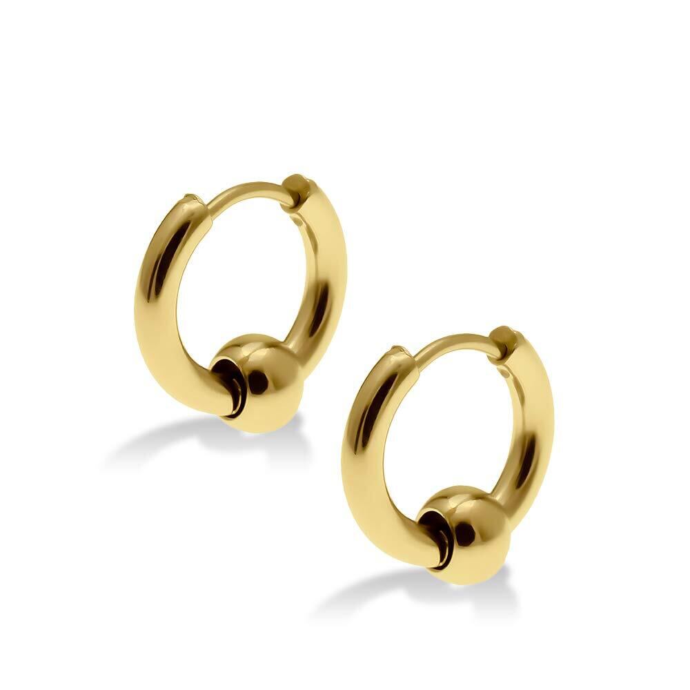 ピアス メンズ フープピアス フープ リング リングピアス レディース ボール ビーズ ステンレス ステンレスピアス シンプル 小ぶり 両耳 両耳セット 18g ゴールド 金色 金 10mm
