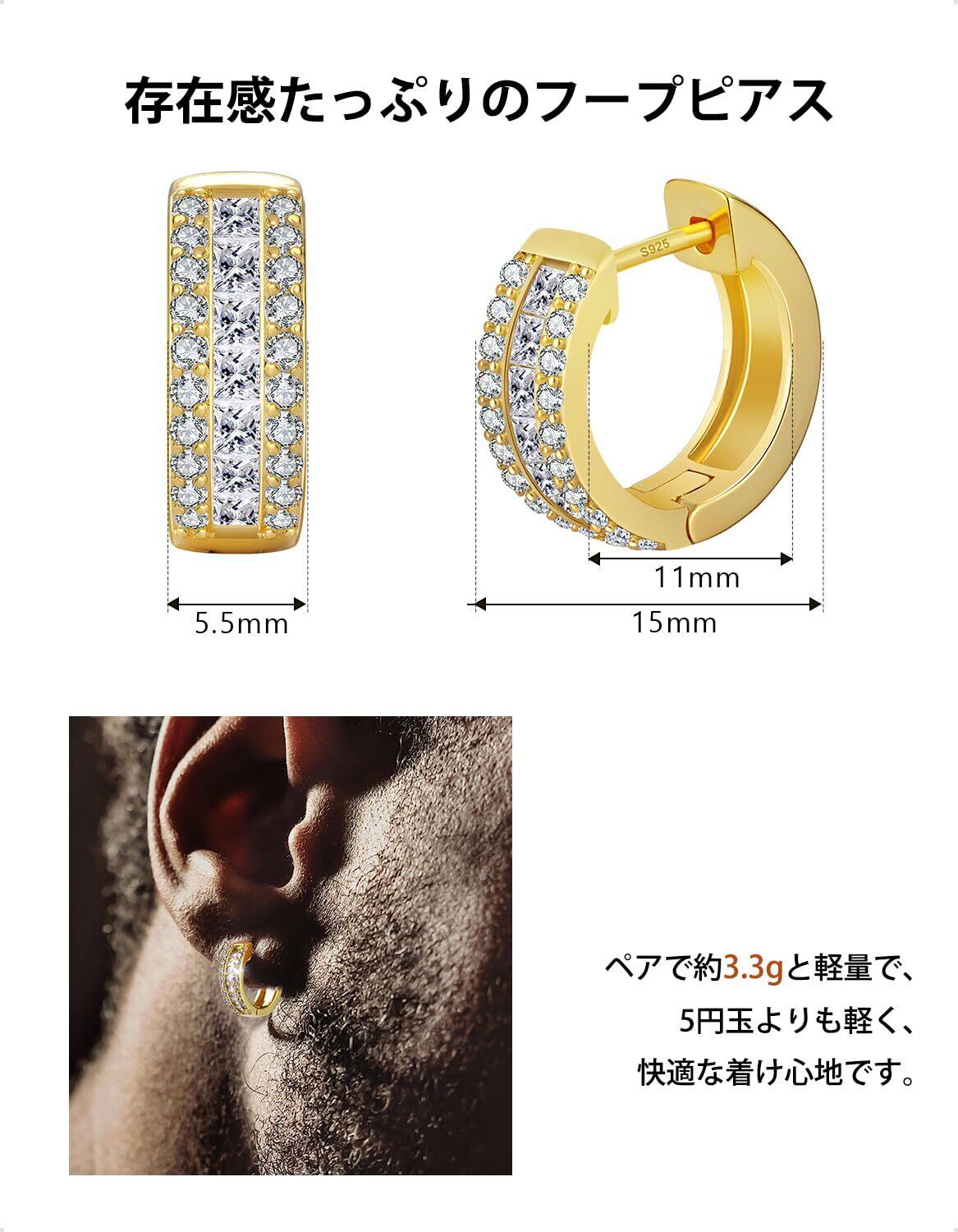 KRKC&CO フープピアス チェーンモチーフ 両耳用 メンズ チェーンピアス シルバー925 15mm 5Aジルコニア 6タイプ CZ パヴェ つけっぱなし 金属アレルギー対応 キラキラ かっこいい アクセサリー 誕生日プレゼント 男性