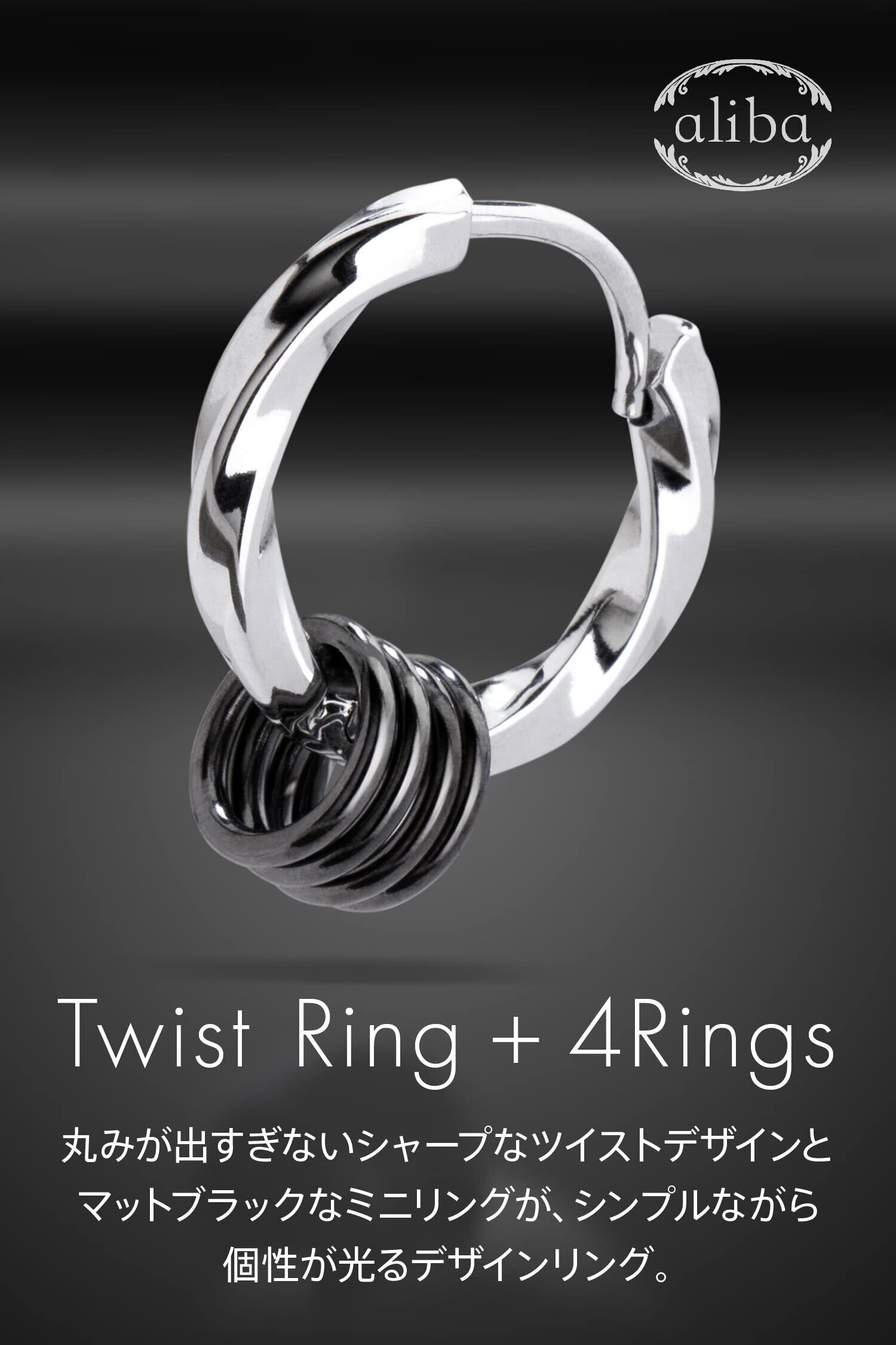 【ミニリングを外して2Way仕様】マットブラックなミニリングを外せば、シンプルなツイストリングとしても使える。丸みを帯びすぎないスマートスタイルなツイストなので、カジュアルに付けやすいデザインです。