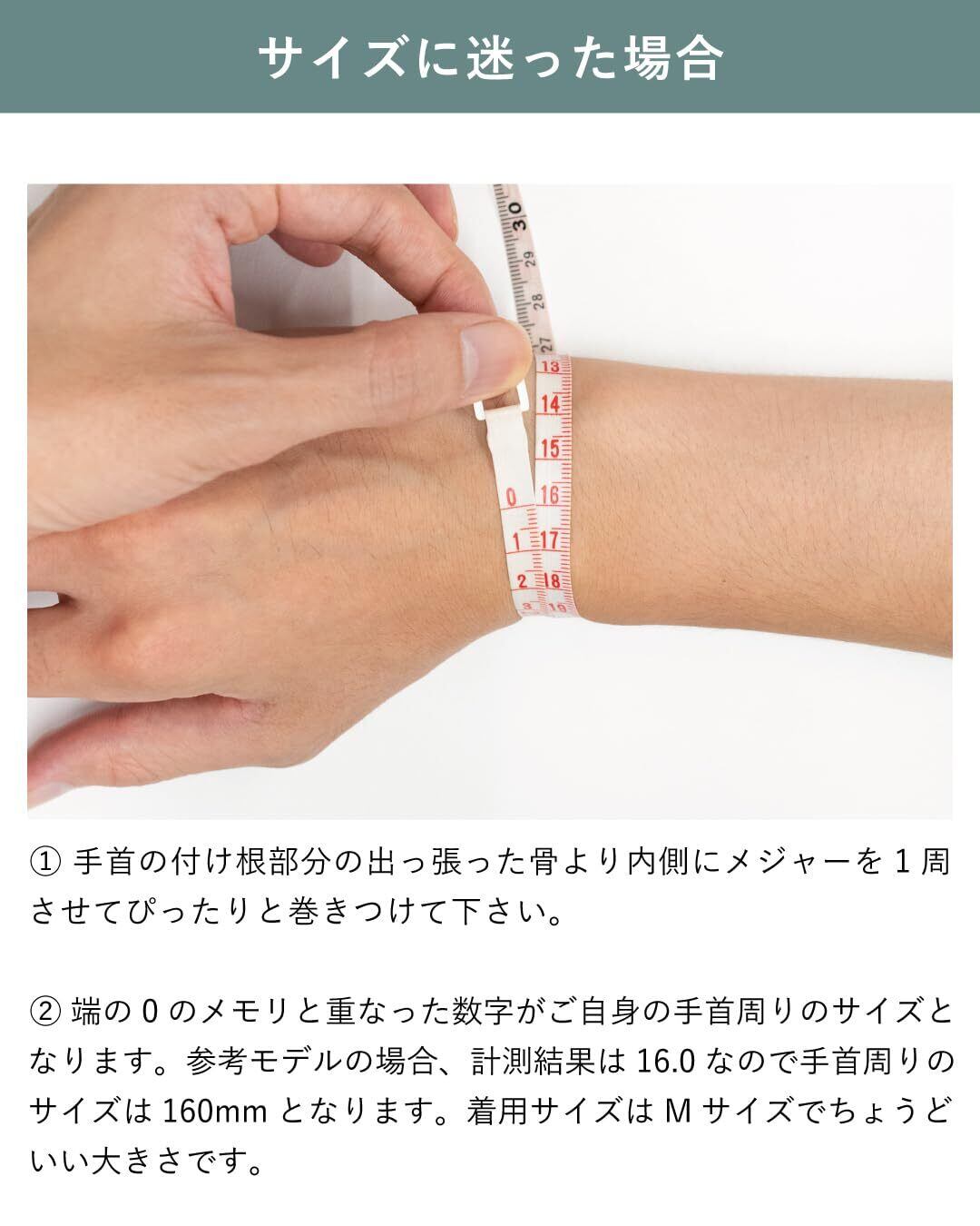 女性や手首の細い男性向けのSサイズ、標準的なMサイズ、手首が太い方向けのLサイズをご用意しております。