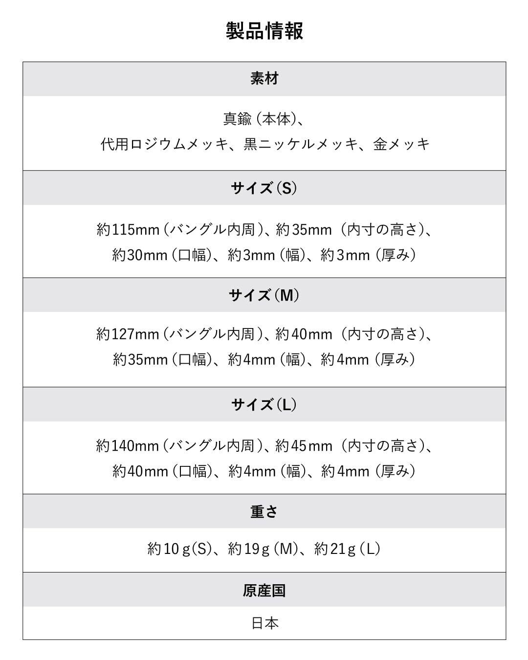素材:真鍮 / 原産国:日本 / 重さ:約10g(S)、約19g(M)、約21g(L)