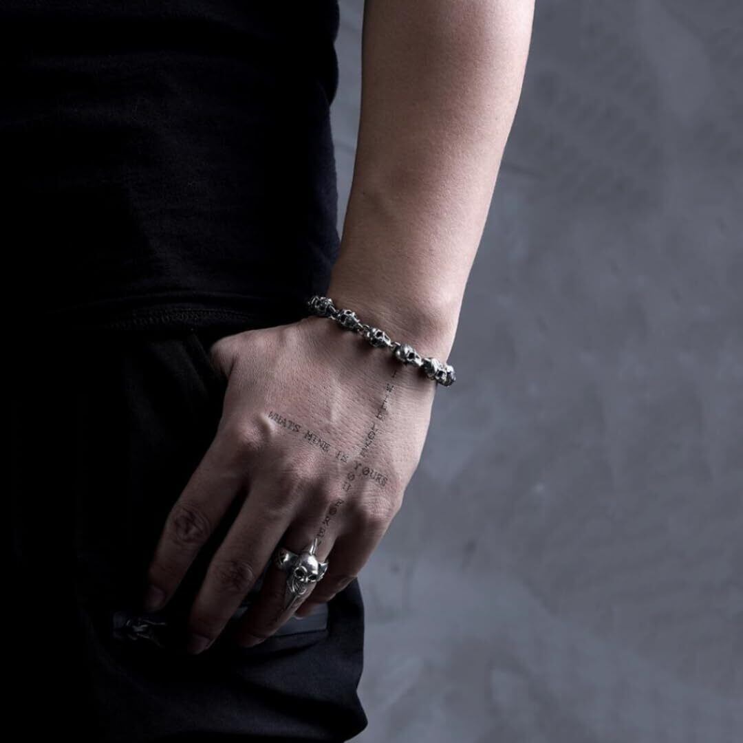 【髑髏デザインのブレスレット】重厚感あるスカルモチーフが印象的なデザイン。古くから「守護」「再生」「強さ」の象徴とされ、身につける人の個性と存在感を引き立てます。