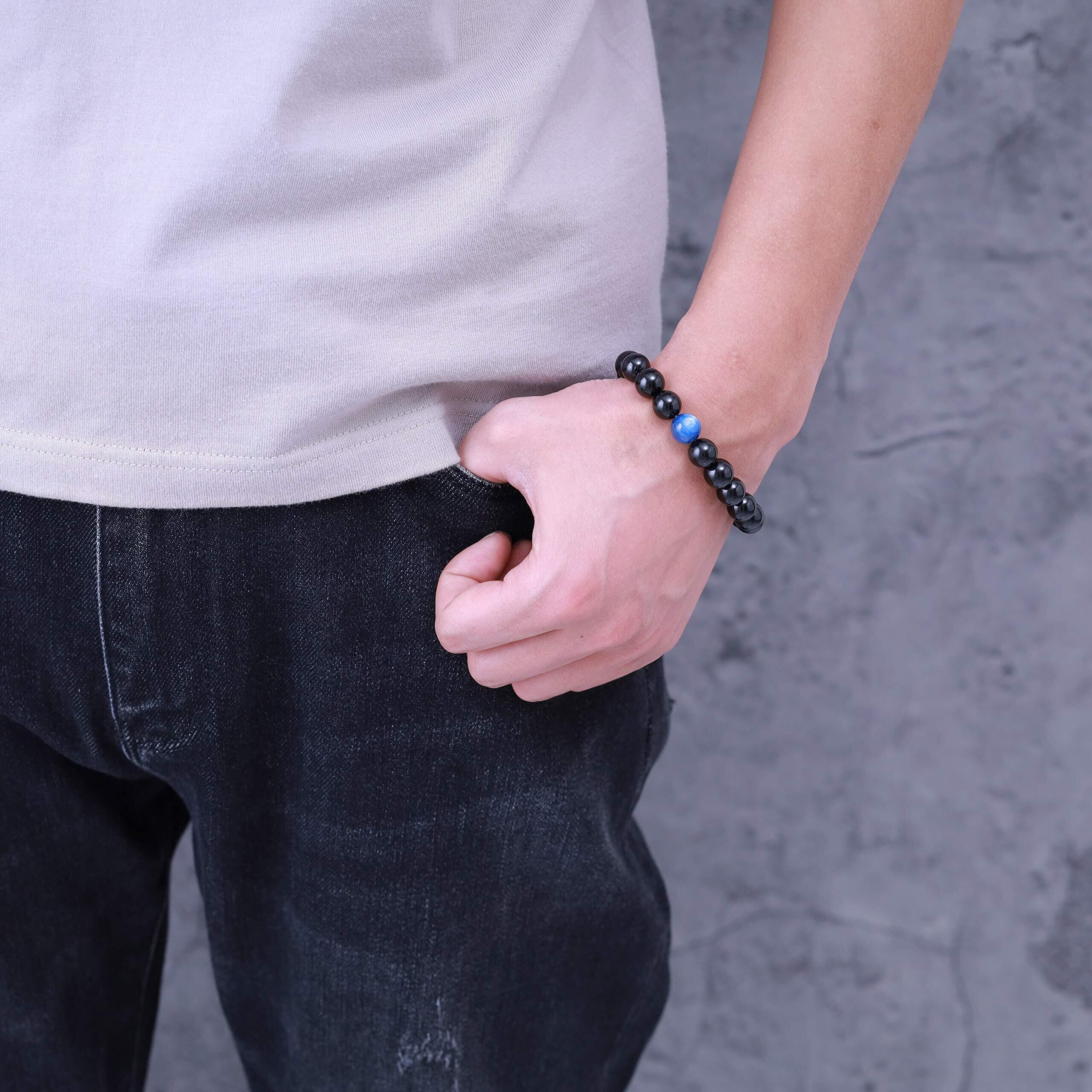 【人気商品】ブラックトルマリン カイヤナイト お守りパワーストーンブレスレット