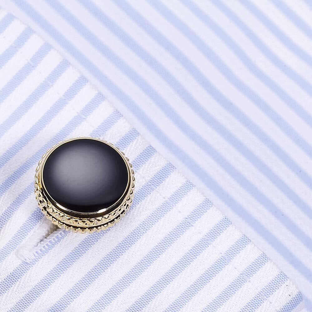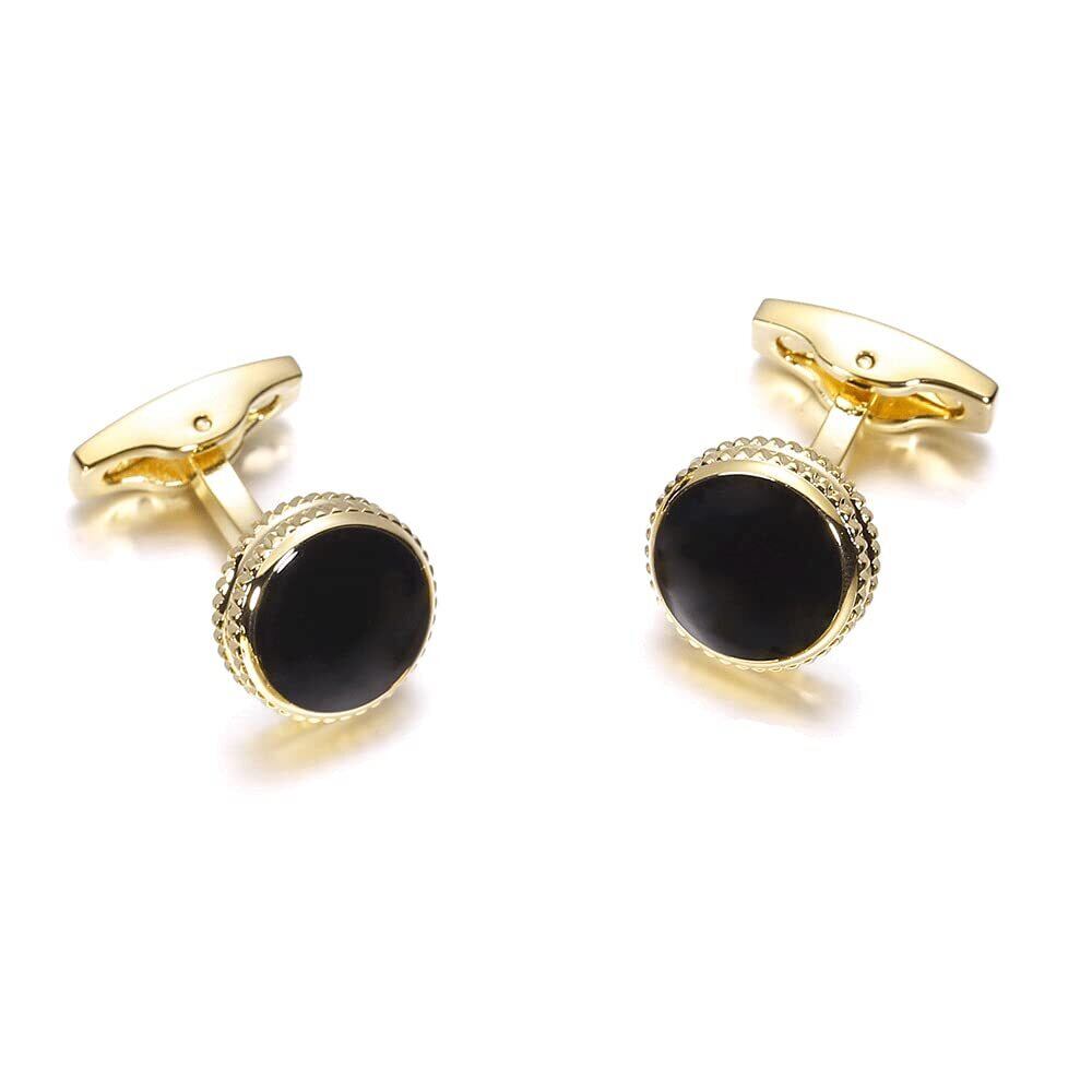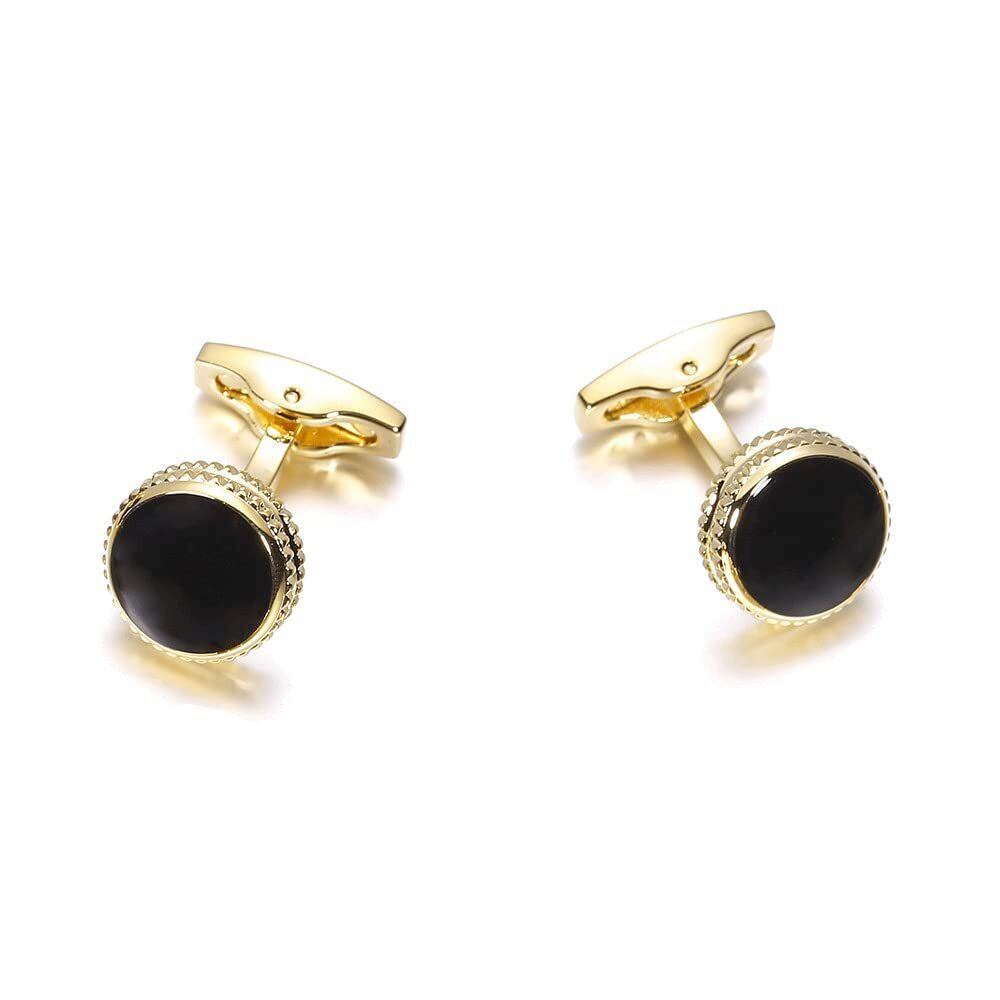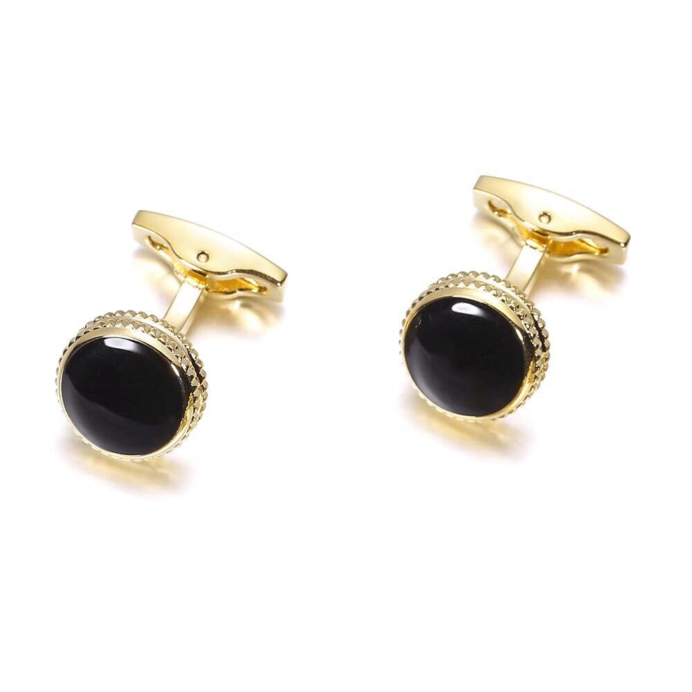 Rockyu カフスボタン ゴールド ブラック メンズ ラウンドカフス 円形カフスボタン ビジネス 就職祝い 父の日プレゼント ヨーロッパ風 カフリンクス ファッション アクセサリー
