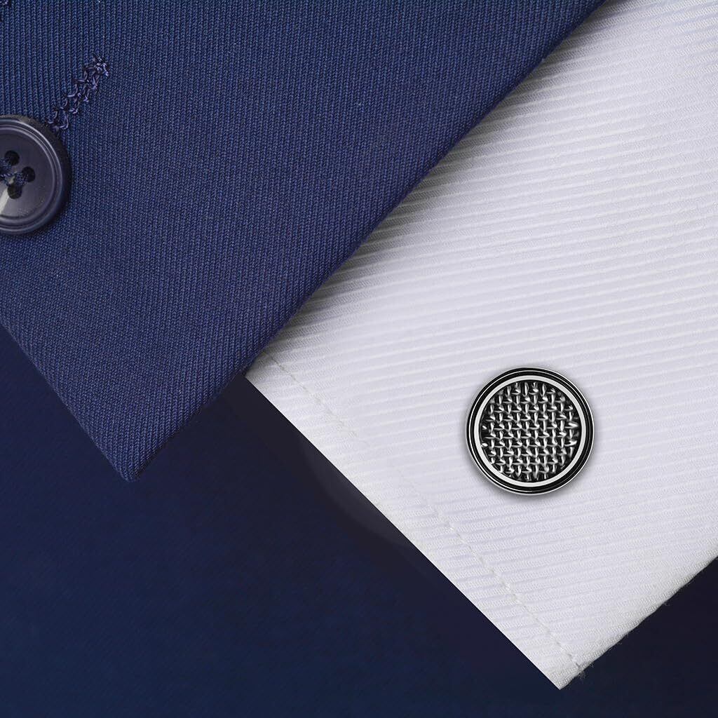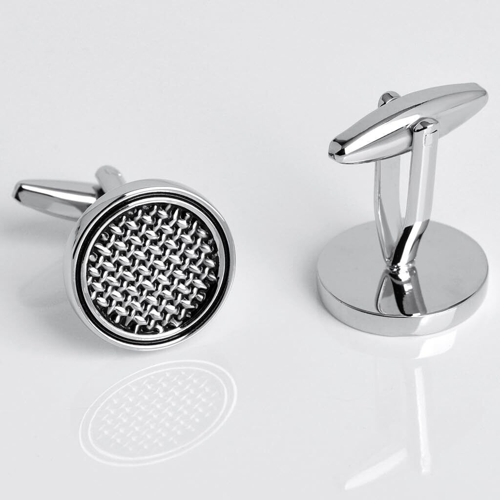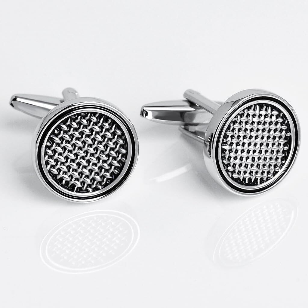 Rockyu カフスボタン メンズ ラウンドデザイン シルバー 17mm ビジネス フォーマル スーツアクセサリー 結婚式