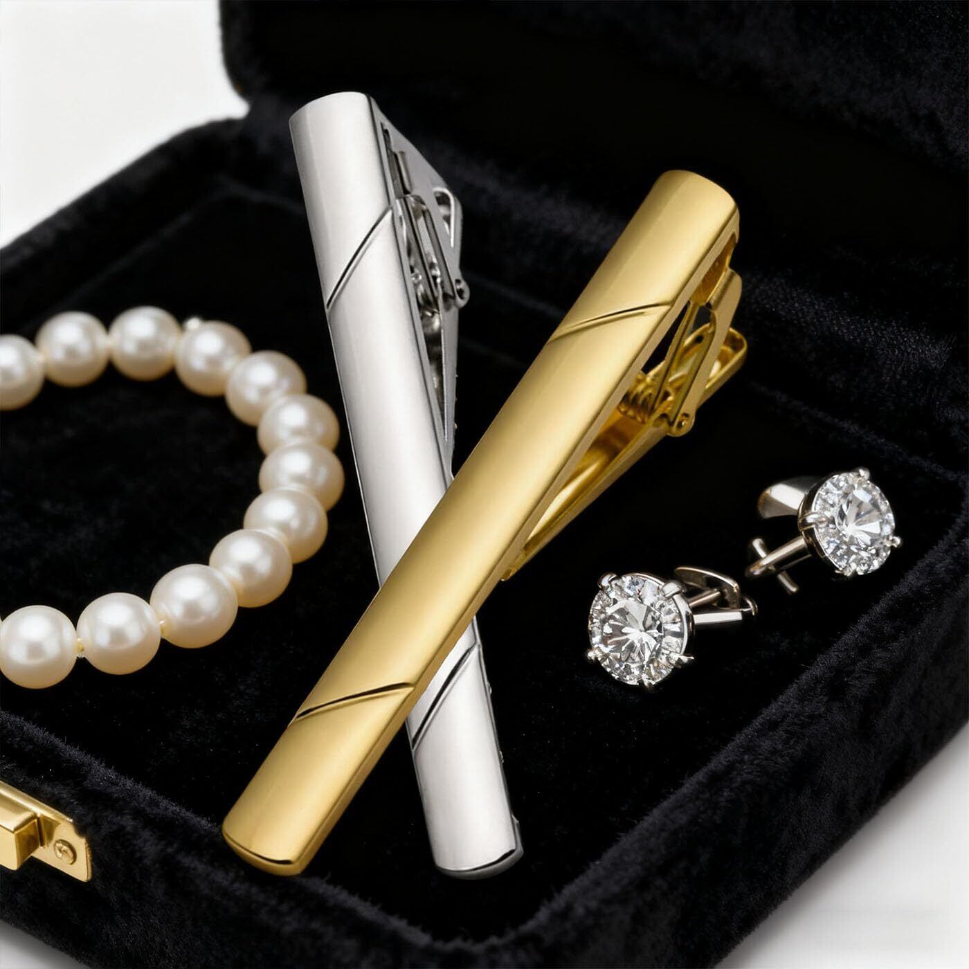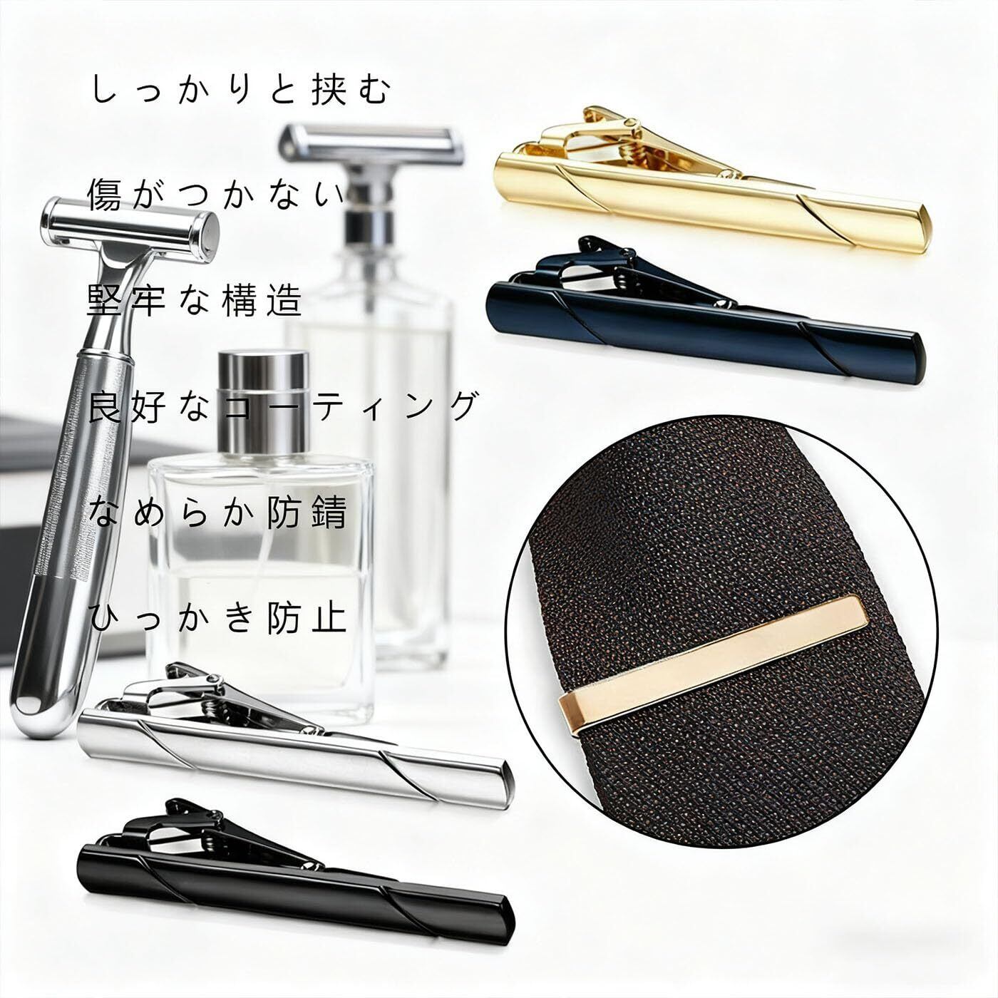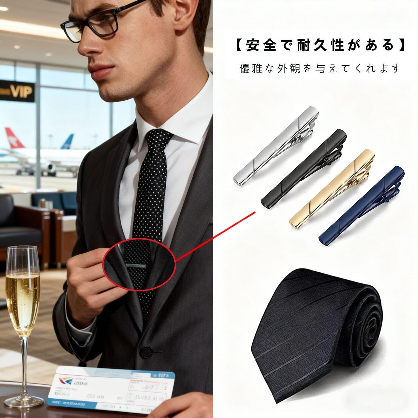 【4色セット、実用的で耐久性がある】4つのネクタイクリップには、青、金、銀、黒の4種類が含まれており、異なる組み合わせのニーズに対応しています。その構造は堅固で、クランプ効果は良好で、表面は滑らかで、防擦特性を備え、耐久性が強い