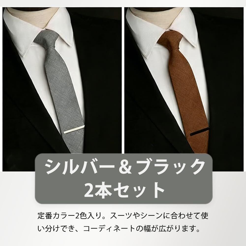 YINKE ネクタイピン 2本セット シルバー&ブラック ステンレス製 シンプルおしゃれ 結婚式 卒業式ビジネス フォーマル タイバー 礼服 スーツ