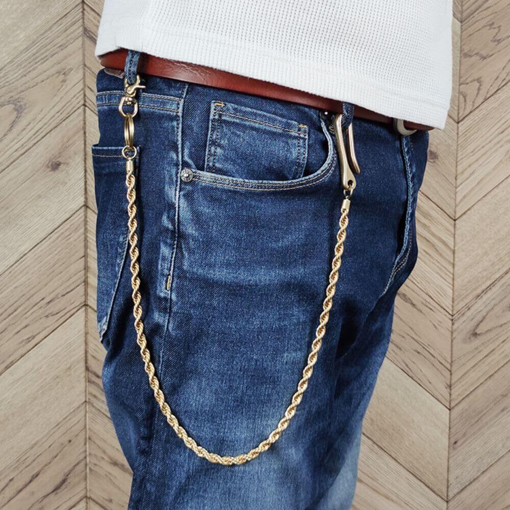 メンズ ウォレットチェーン 真鍮 財布チェーン キーチェーン ゴールド hzwc-013-018