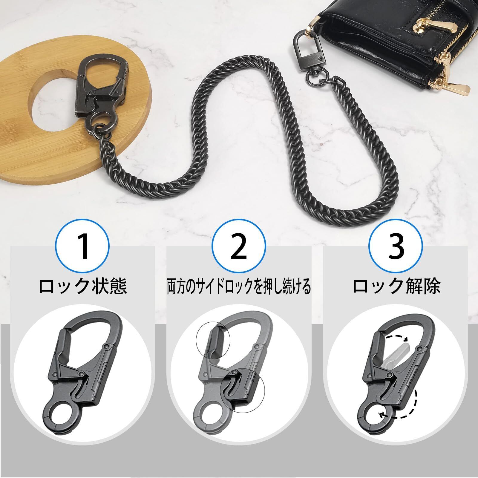 【ファッショナブル&シンプル】:このズボンのチェーンはファッショナブルと盗難防止が1つになったもので、登山用の留め具は二重の不正開錠防止デザインで、財布やキーホルダー、ベルトループに固定でき、鍵や財布が盗まれる心配がなく、日常使いの実用的なアクセサリーです