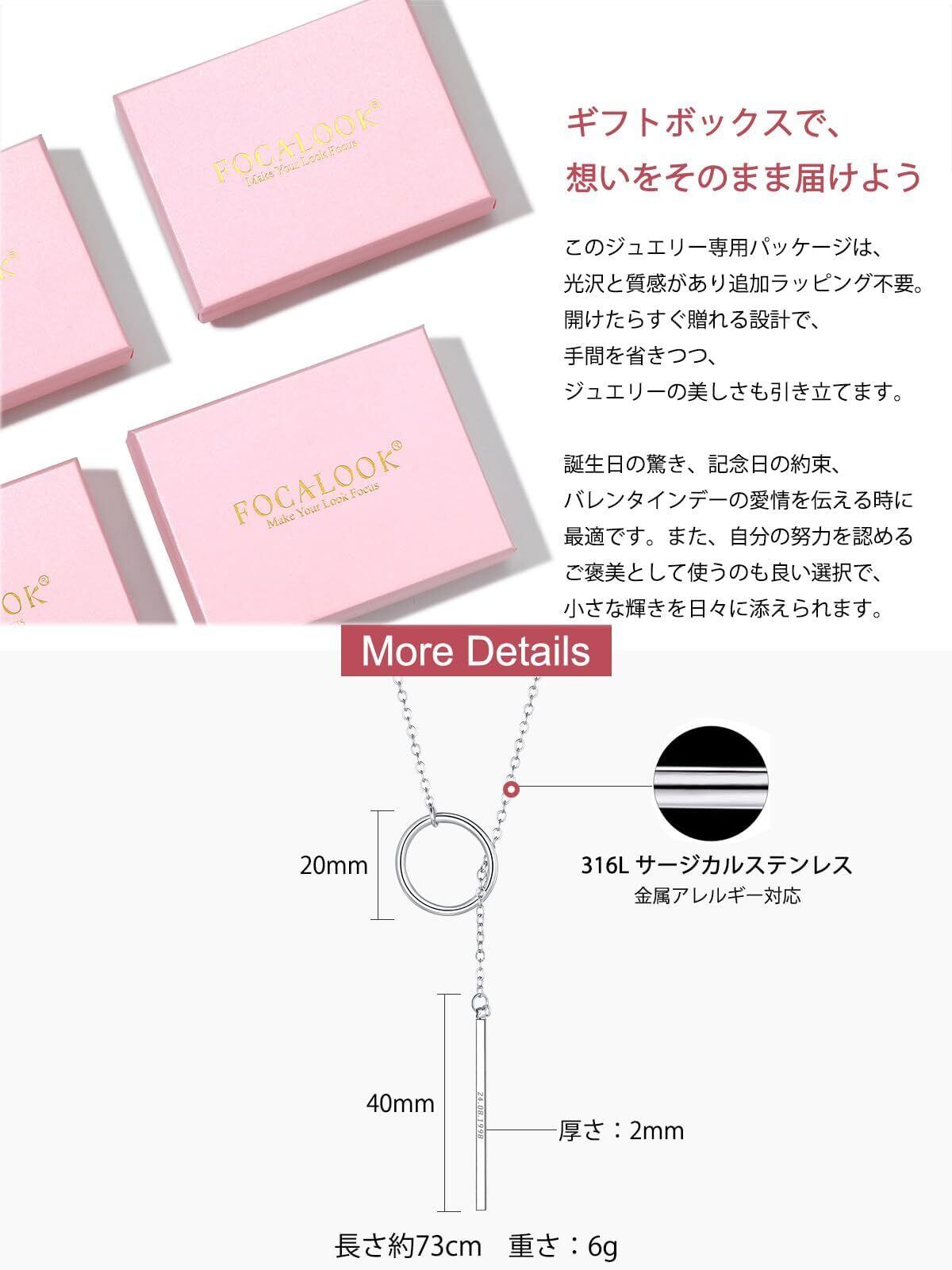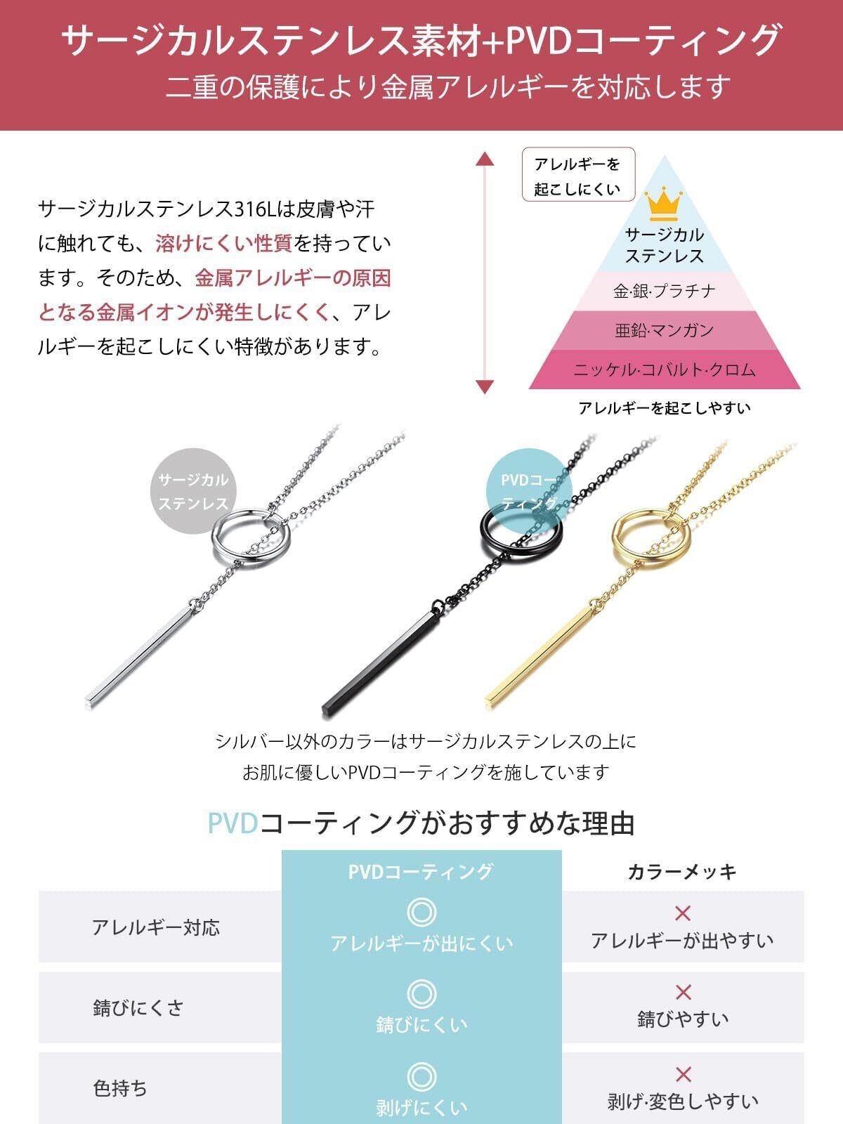 ネックレス仕様:全長73cm リング:直径2cm バー:長さ4cm カラー:ゴールド、シルバー、ブラック