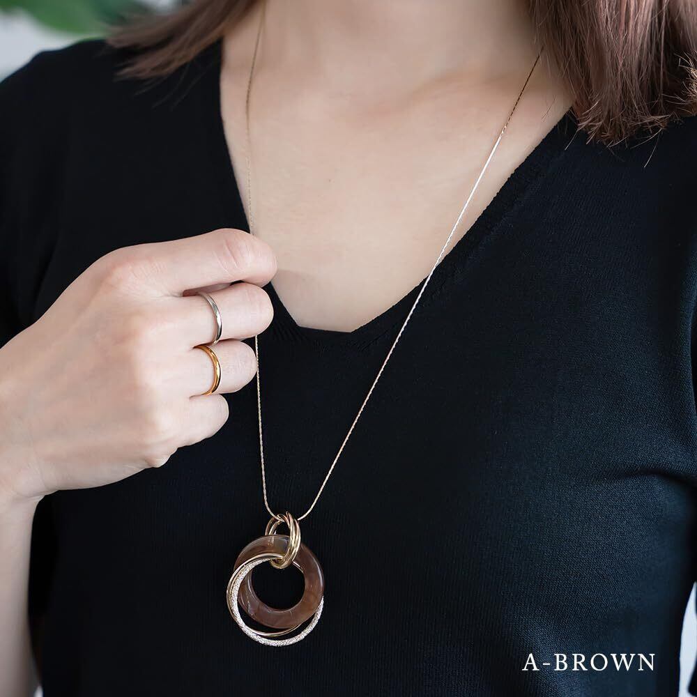 【サイズ】チェーン全長:約66.0~68.0cm (アジャスター含む)/ Aリングモチーフ全体:約W3.5×H4.7cm / Bクリアモチーフ全体:約W3.5×H5.0cm