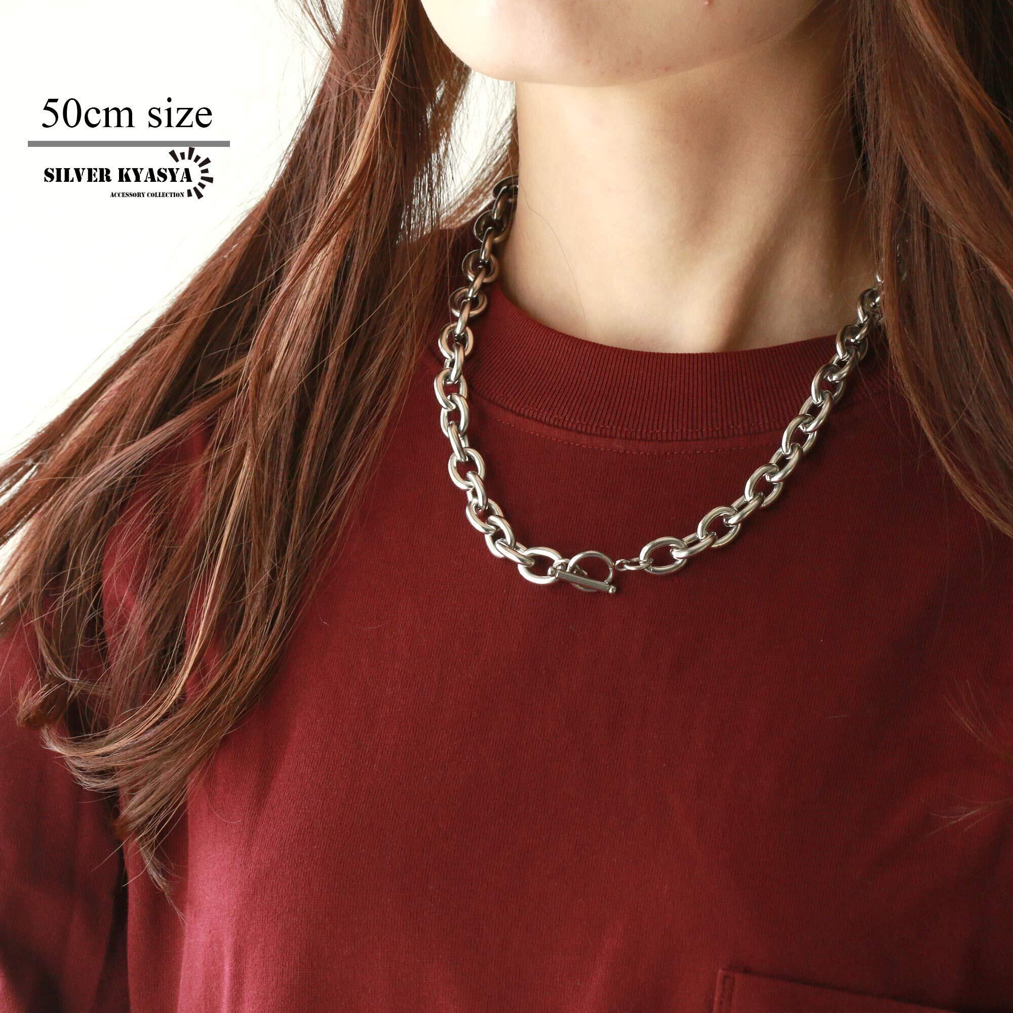 太幅 ステンレス チェーンネックレス メンズ レディース マンテル ネックレス シルバー 銀色 あずきチェーン シンプル ネックレス 50cm