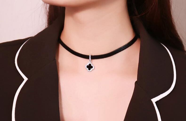チョーカー ネックレス レディース ブラック ベルベット 四葉 クローバー ペンダント クリスタル ゴシック シンプル おしゃれ フェミニン 首飾り アクセサリー デート用