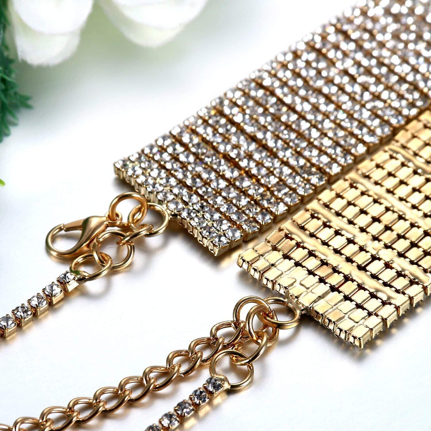 [材質]銅+ラインストーン[全長](21.5cm)+延長チェーン(13cm)長さ調節可能 [広さ](2.4cm)[重量]38g