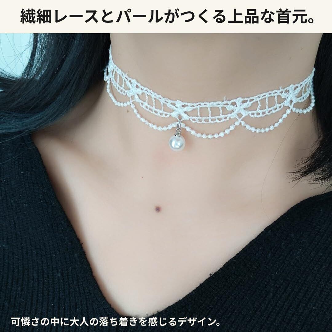 ②【繊細なレースデザイン】 細部まで丁寧に仕上げられたレースは、軽やかで柔らかい質感。 フェミニンな印象を保ちながら、軽やかに首元を飾ります。 どんなコーデにも合わせやすく、季節を問わず活躍します。