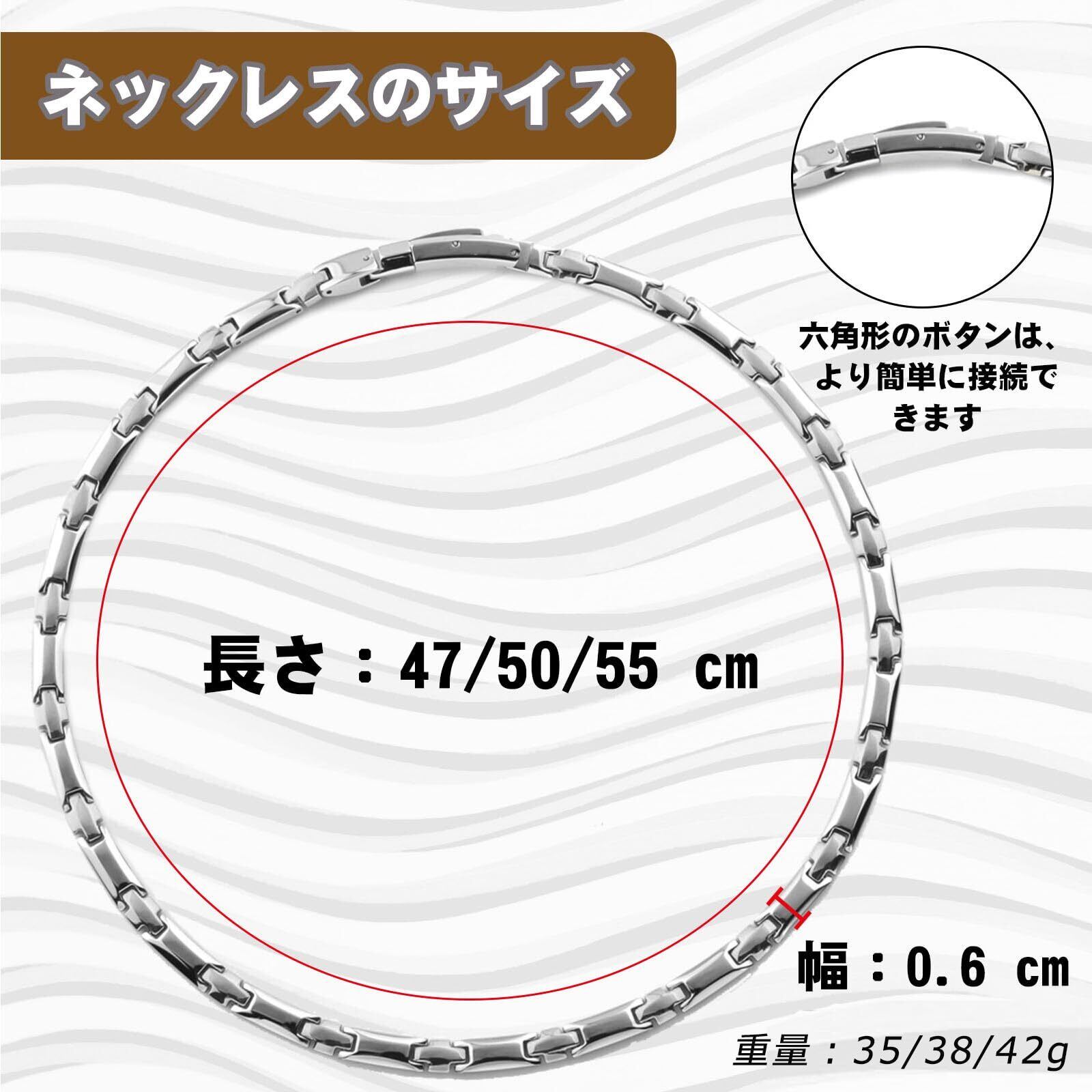【ネックレスの属性】ネックレスの3つの長さ:47/51/55 cm 幅:0.6cm、健康的な要素:純度99.99%ゲルマニウム*21 / 23 / 25粒、色:シルバー、純チタン、男性と女性に適しています