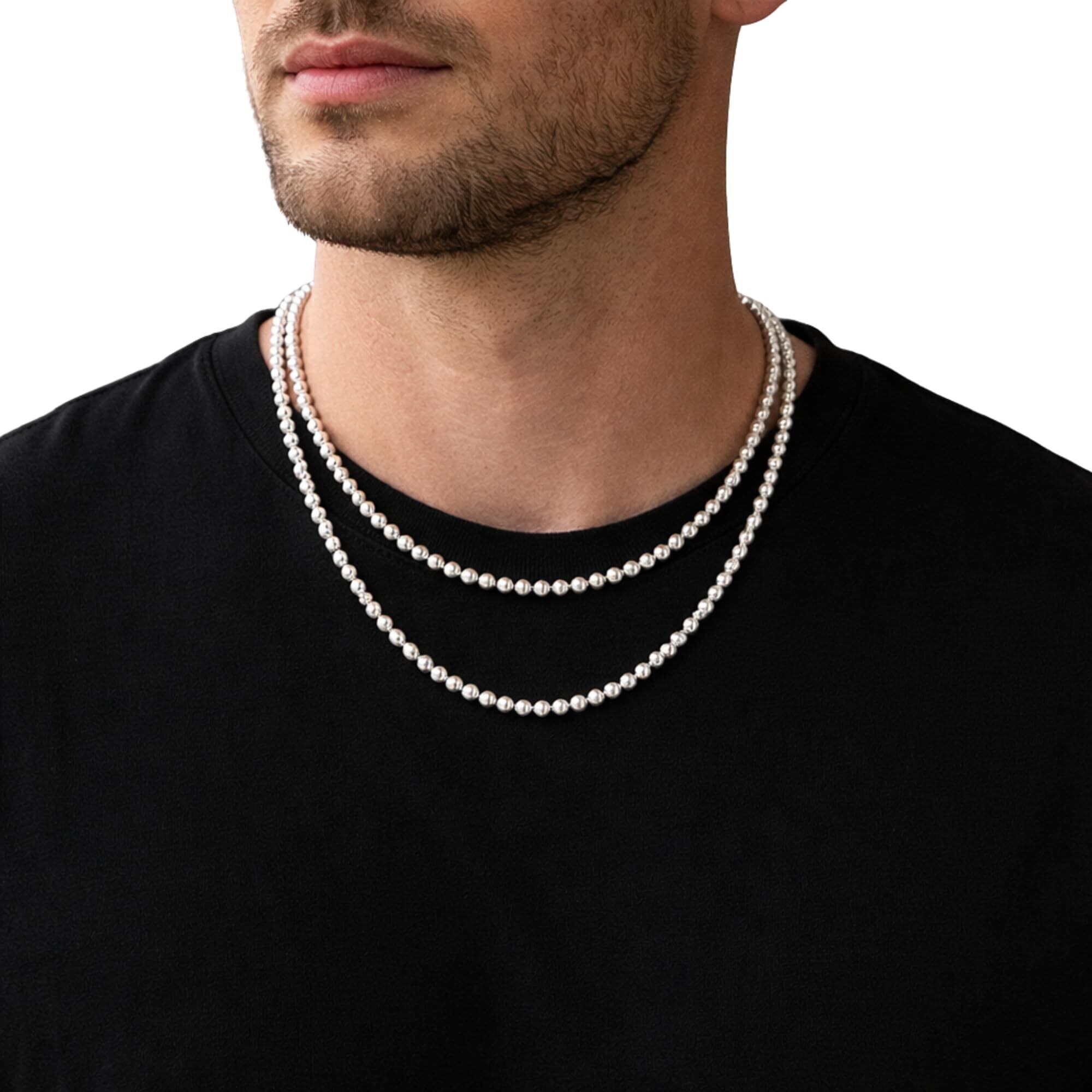 【新着商品】ボールチェーン ネックレス 幅4mm 長さ40〜60cm 5cm刻み 合金 メンズ レディース 太め シンプル 光沢 アクセサリー 首飾り 存在感 重ね付け対応