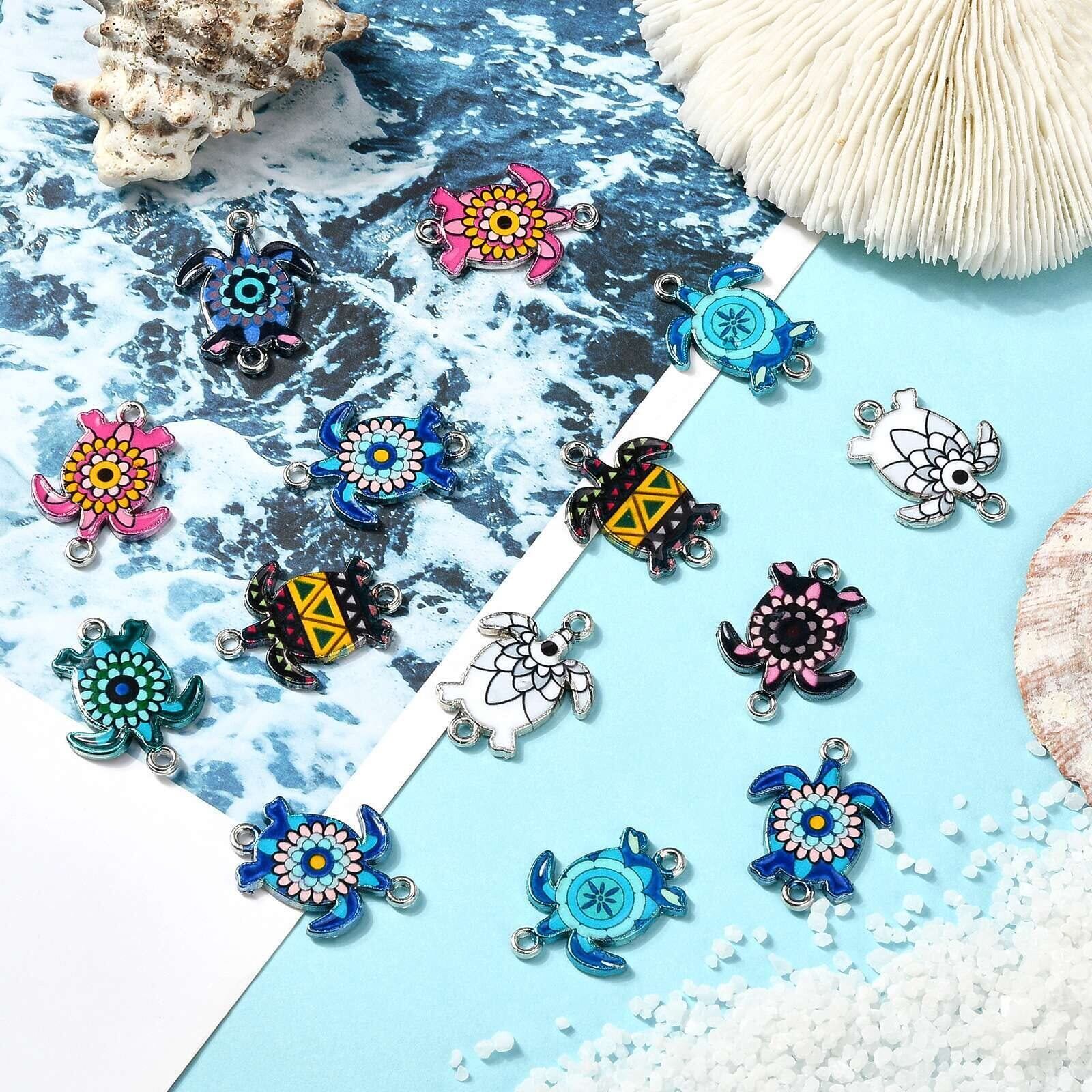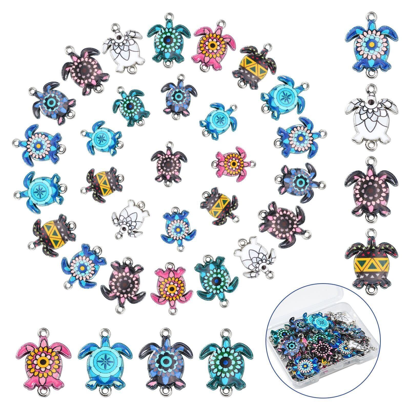 DanLingJewelry 40個 8色 エナメル ウミガメ チャーム アニマルチャーム エナメル オーシャンチャーム ジュエリーメイキング クラフト DIY用