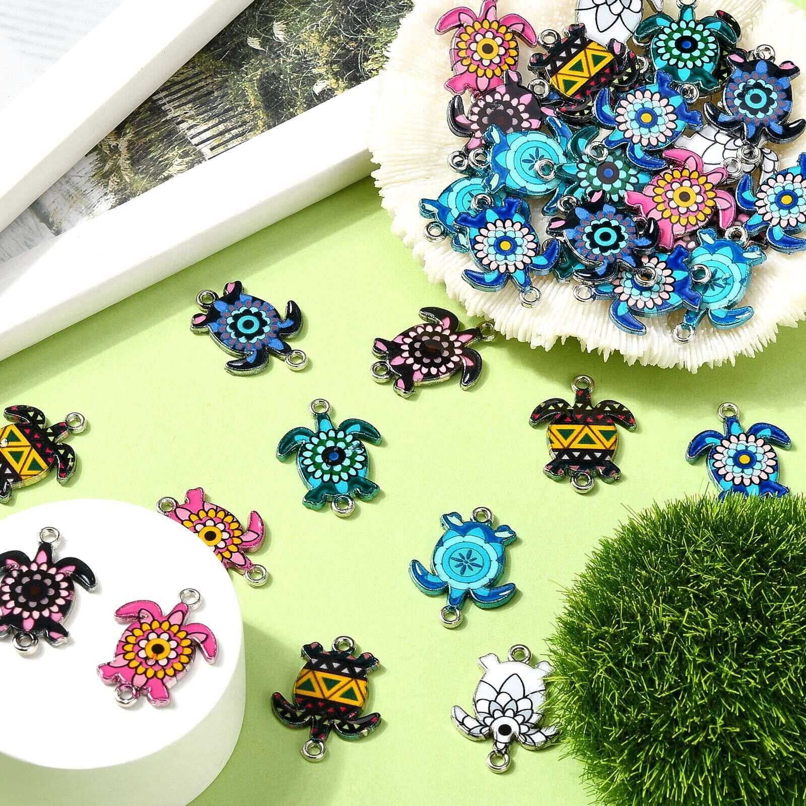 素材: このカメのチャームは合金エナメル製で、非常に安定性と耐久性があります。 可愛くミックスカラーの外観で、チャームはジュエリー作りに適しています。