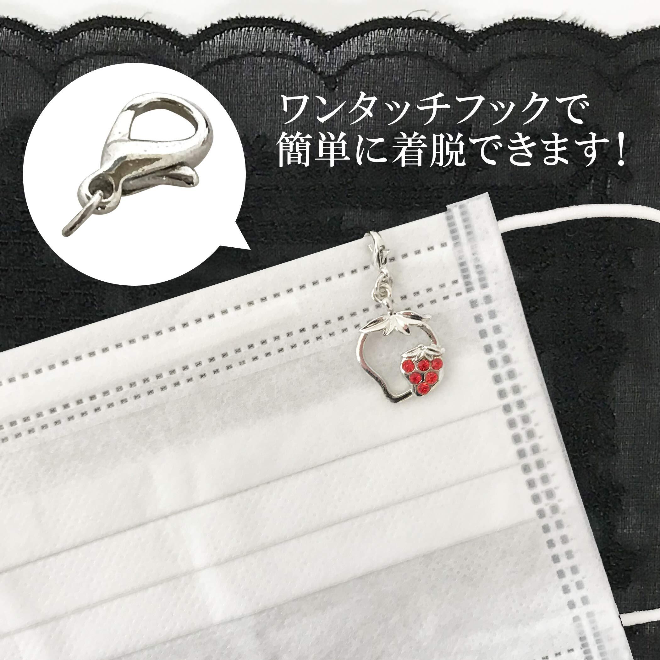 【マスクをおしゃれに】毎日の生活で欠かせないものとなったマスク。シンプルなマスクではちょっと味気ないというオシャレ女子に向けたアクセサリーです。マスクに簡単にポチっとつけるだけでおしゃれになれます!かわいいフルーツをチャームのモチーフにしました。