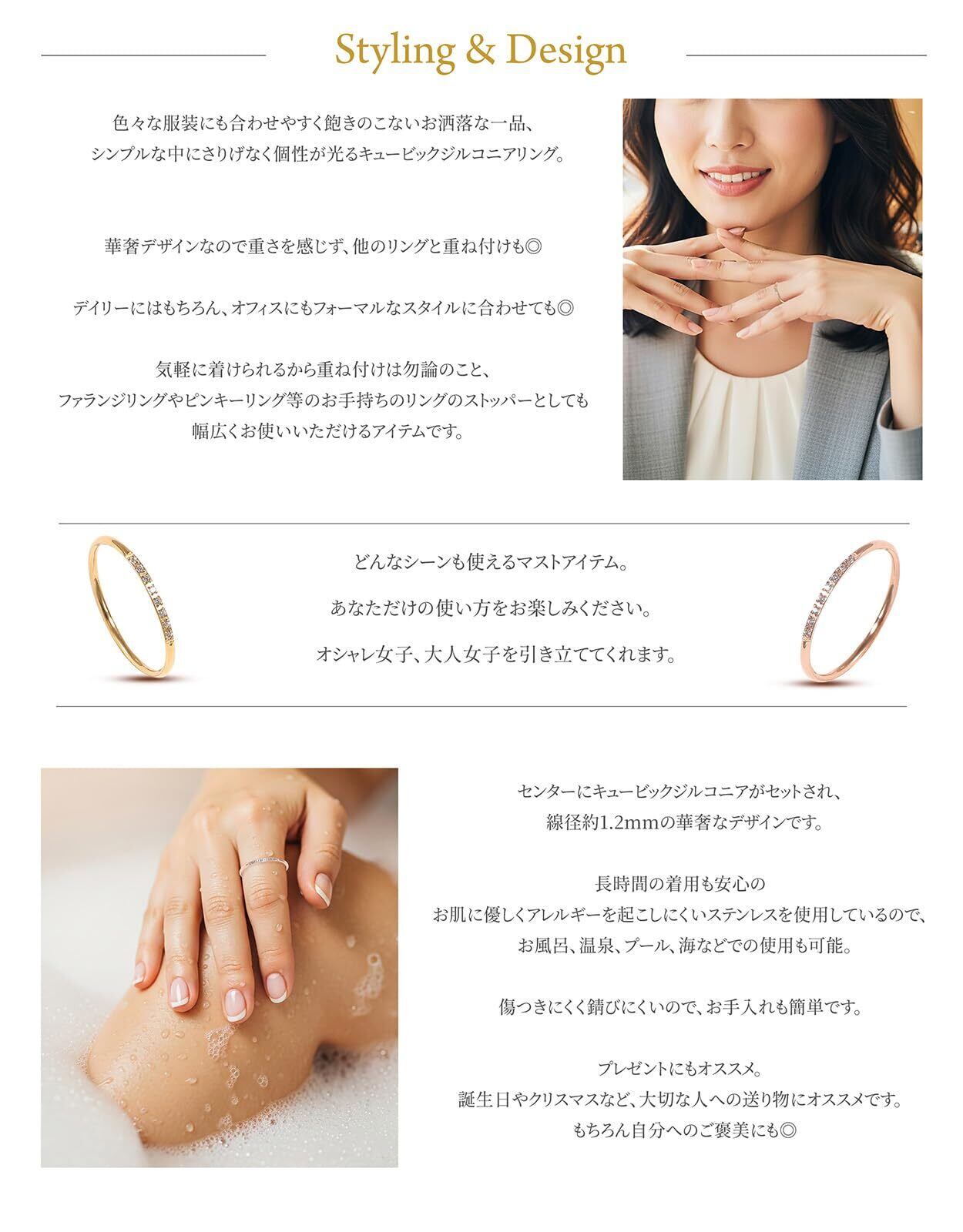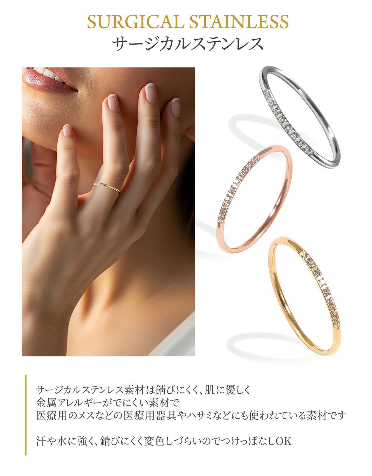 リング 指輪 金属アレルギー対応 サージカルステンレス ニッケルフリー ステンレス K18GP 華奢リング 1.2mm キュービックジルコニアリング 8粒 シンプル レディース メンズ 4号~21号