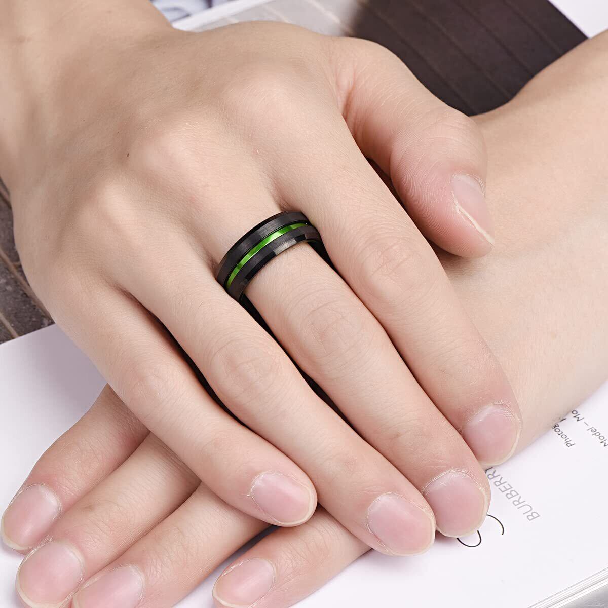 指輪 リング メンズ レディース タングステン シンプル 平打ち 幅:8mm カラー:グリーン 25号
