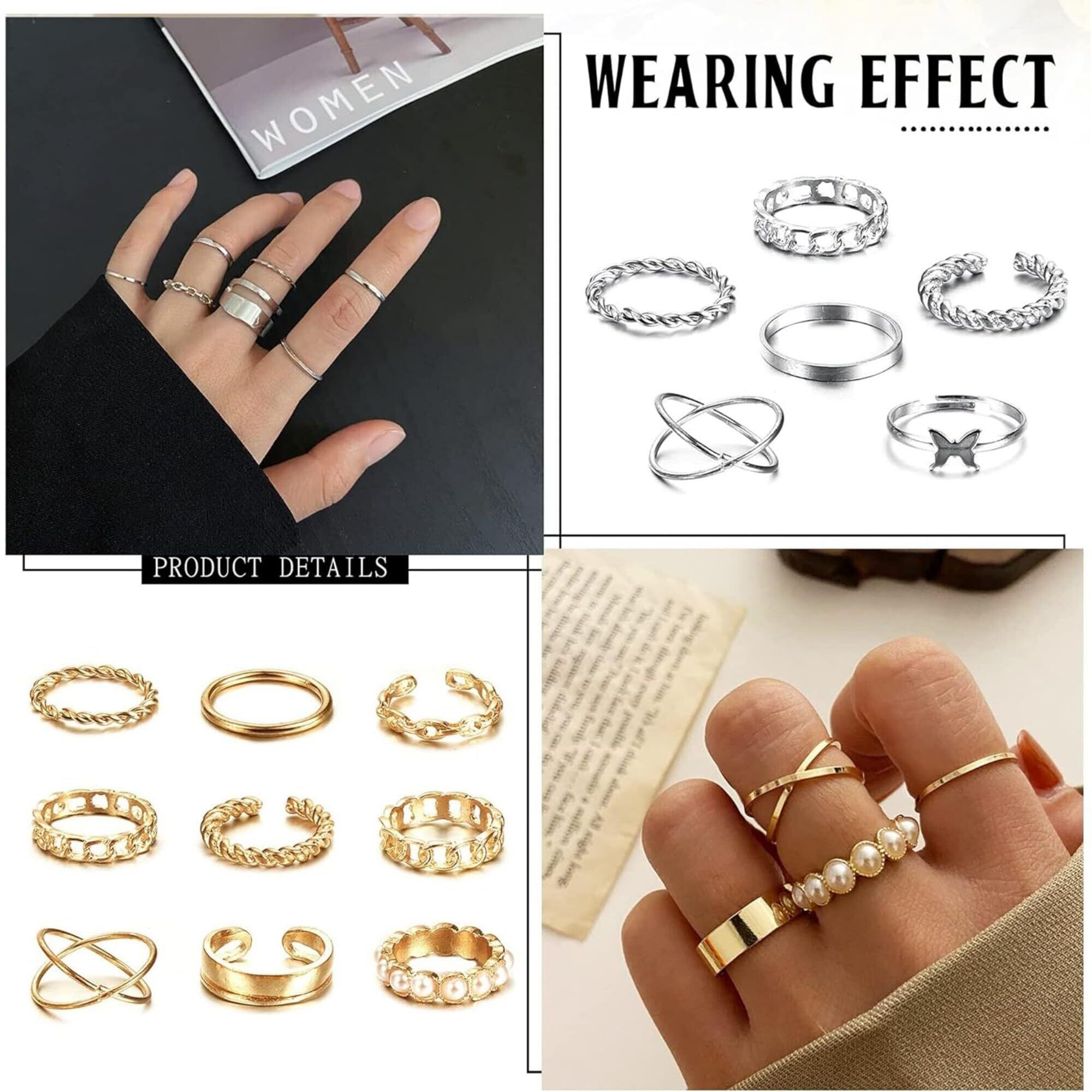 40個のナックル積み重ね可能なリングを含む。あなたの個性と魅力を示すために、異なる指に着用する異なるサイズを選択してください。