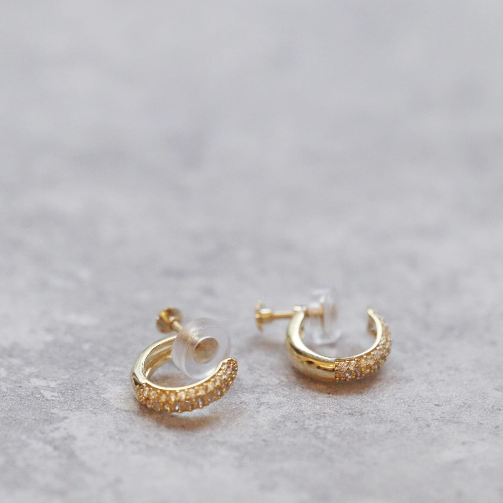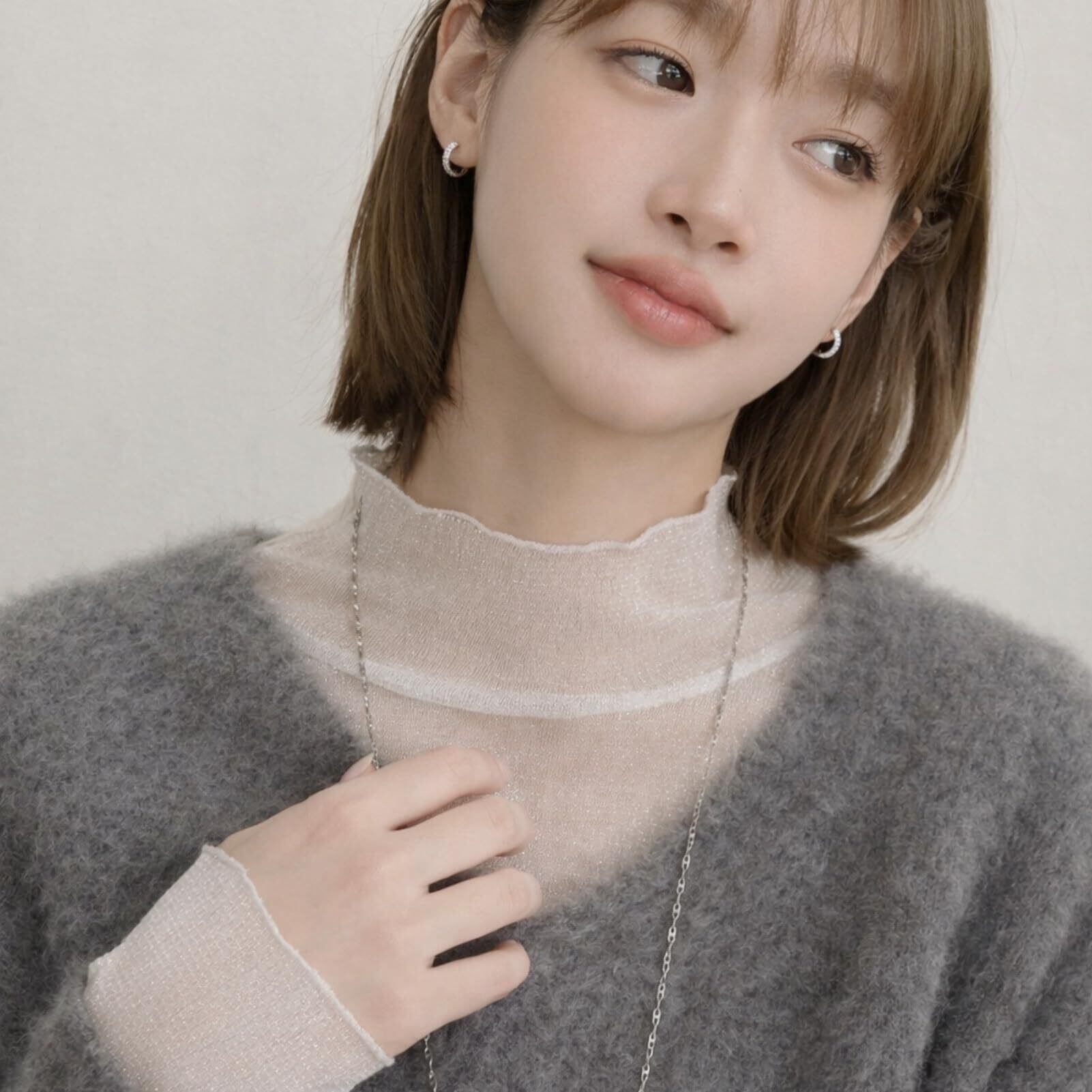小粒ストーンを贅沢に敷き詰めたパヴェ仕上げ。主張しすぎず、顔まわりを自然に明るく見せる大人のための輝きです。